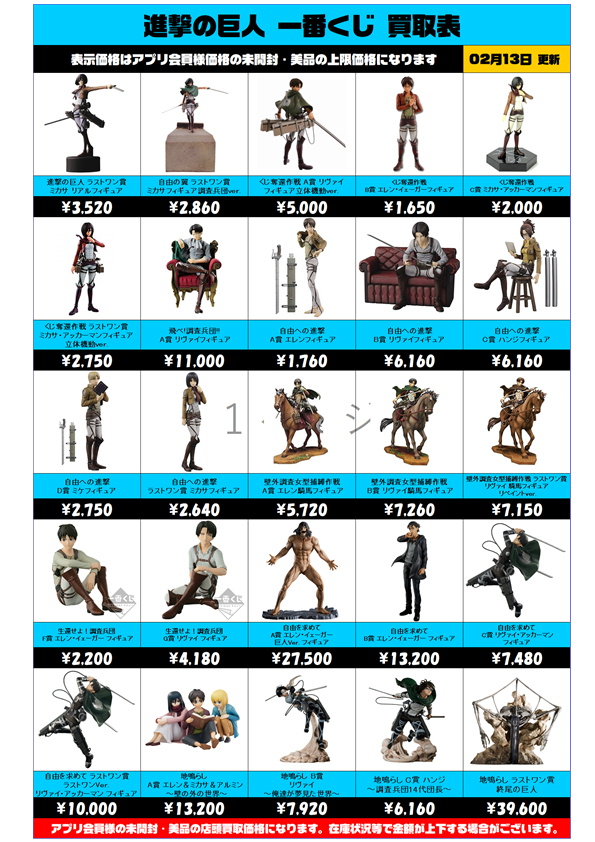 | 一番くじ 進撃の巨人~飛べ!調査兵団!!~ A賞 リヴァイフィギュア | 11000 |
