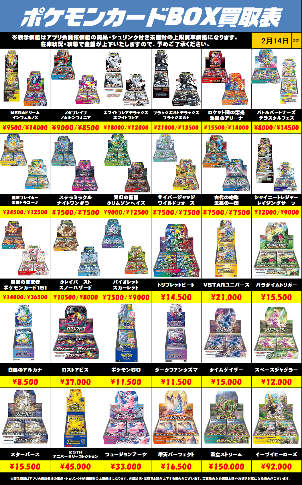 黒炎の支配者 ¥7000買取 ポケモンカード151 ¥14000買取 クレイバースト ¥8000買取 スノーハザード ¥7000買取 トリプレットビート ¥7500買取 バイオレットEX \8000買 …
