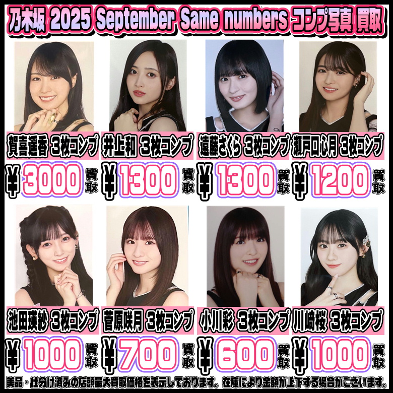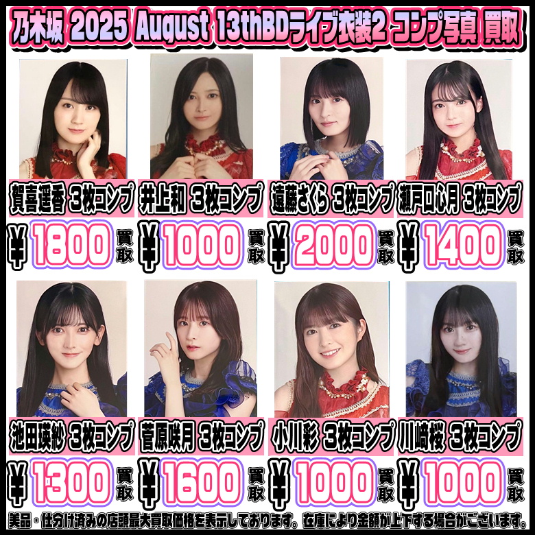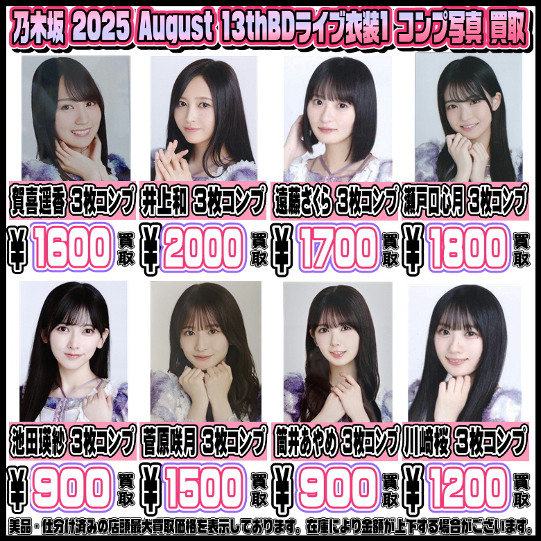 乃木坂46 コンプ写真も高額買取実施中です! 2025 7月・8月・9月 2/15