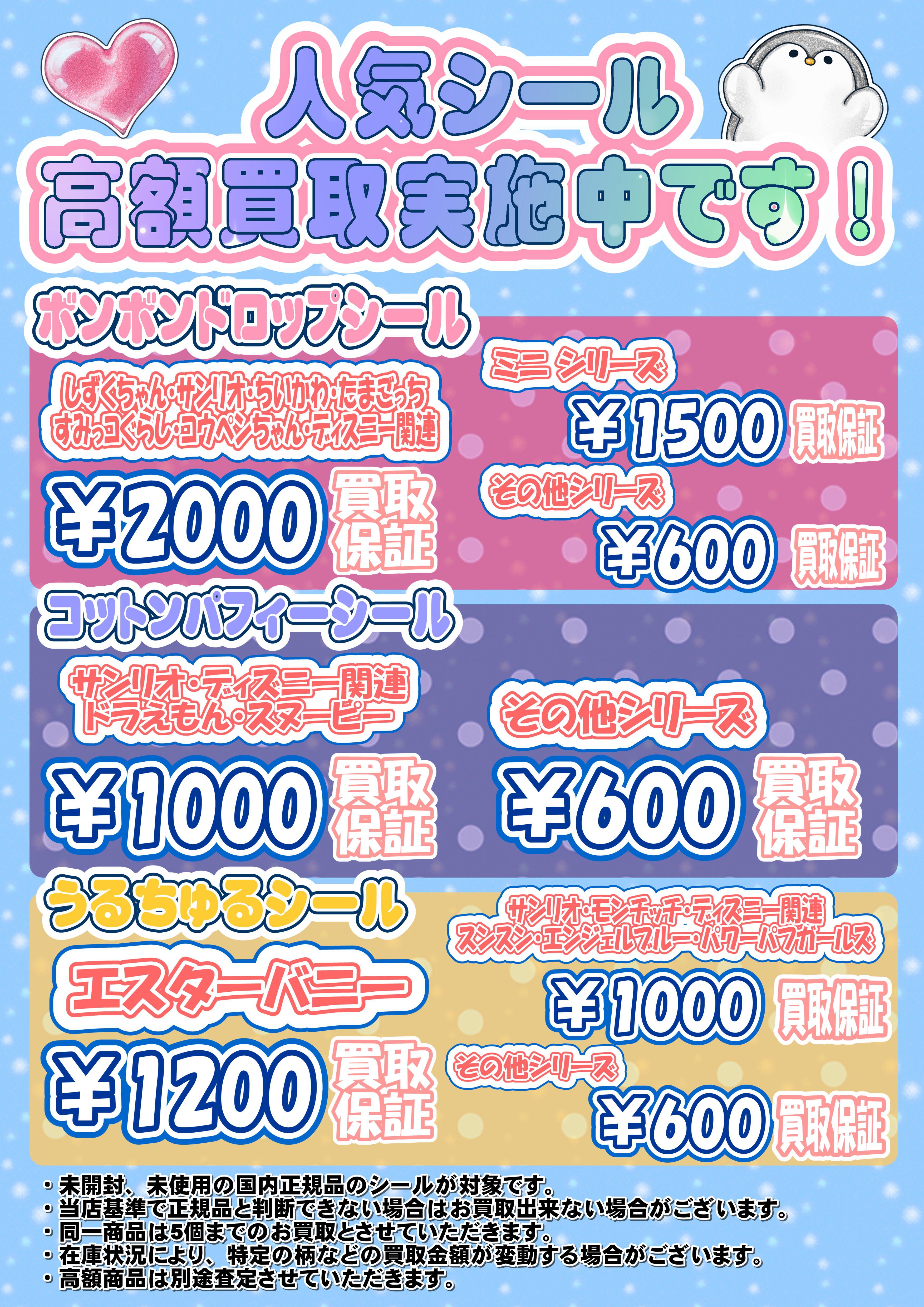 ボンボンドロップシール・うるちゅるPOPシール・コットンパフィーシール 超高額買取実施中です! 2/17~
