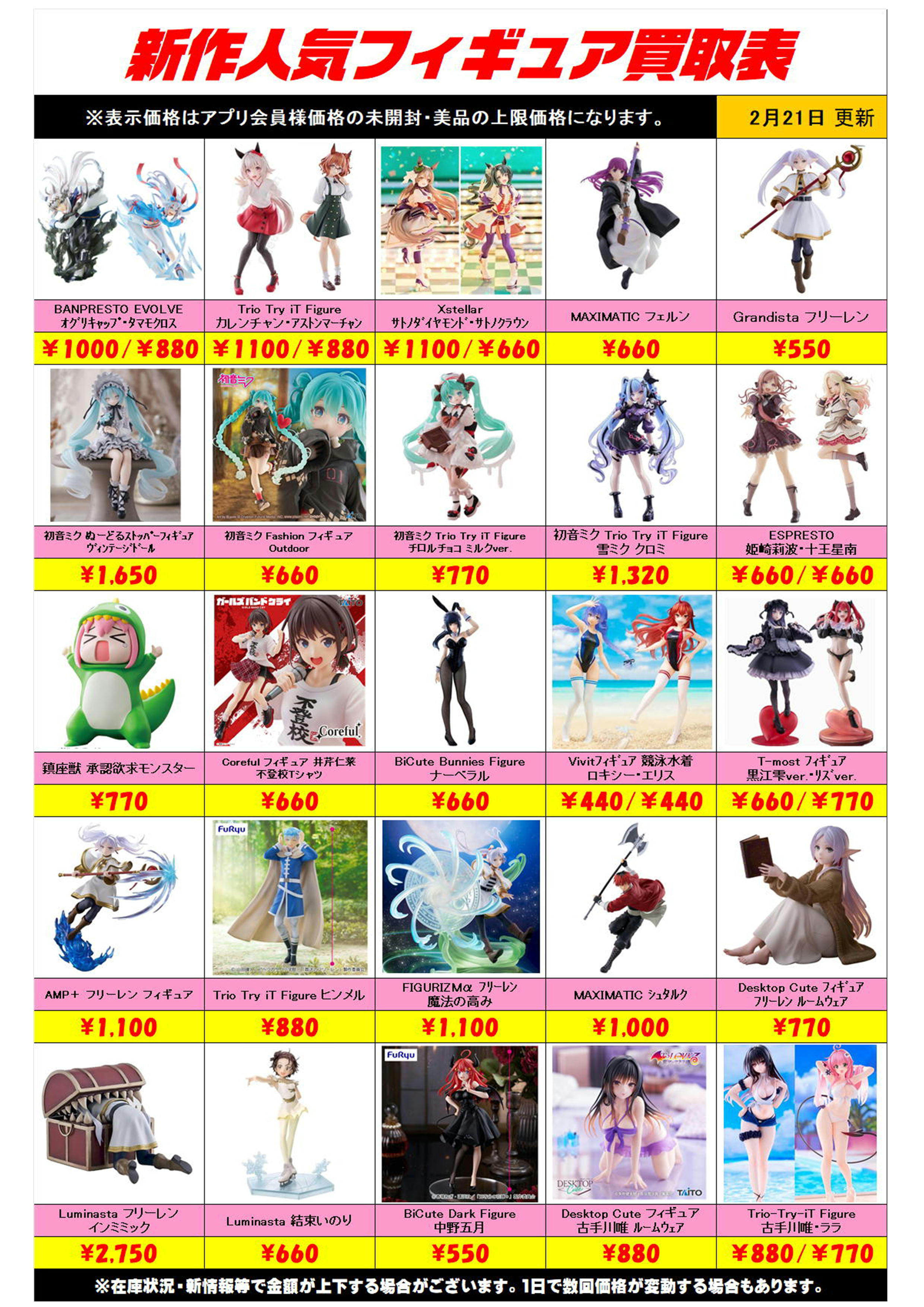新作プライズフィギュア買取リスト更新しました! 2/21~ プラスアップキャンペーンも実施中です!