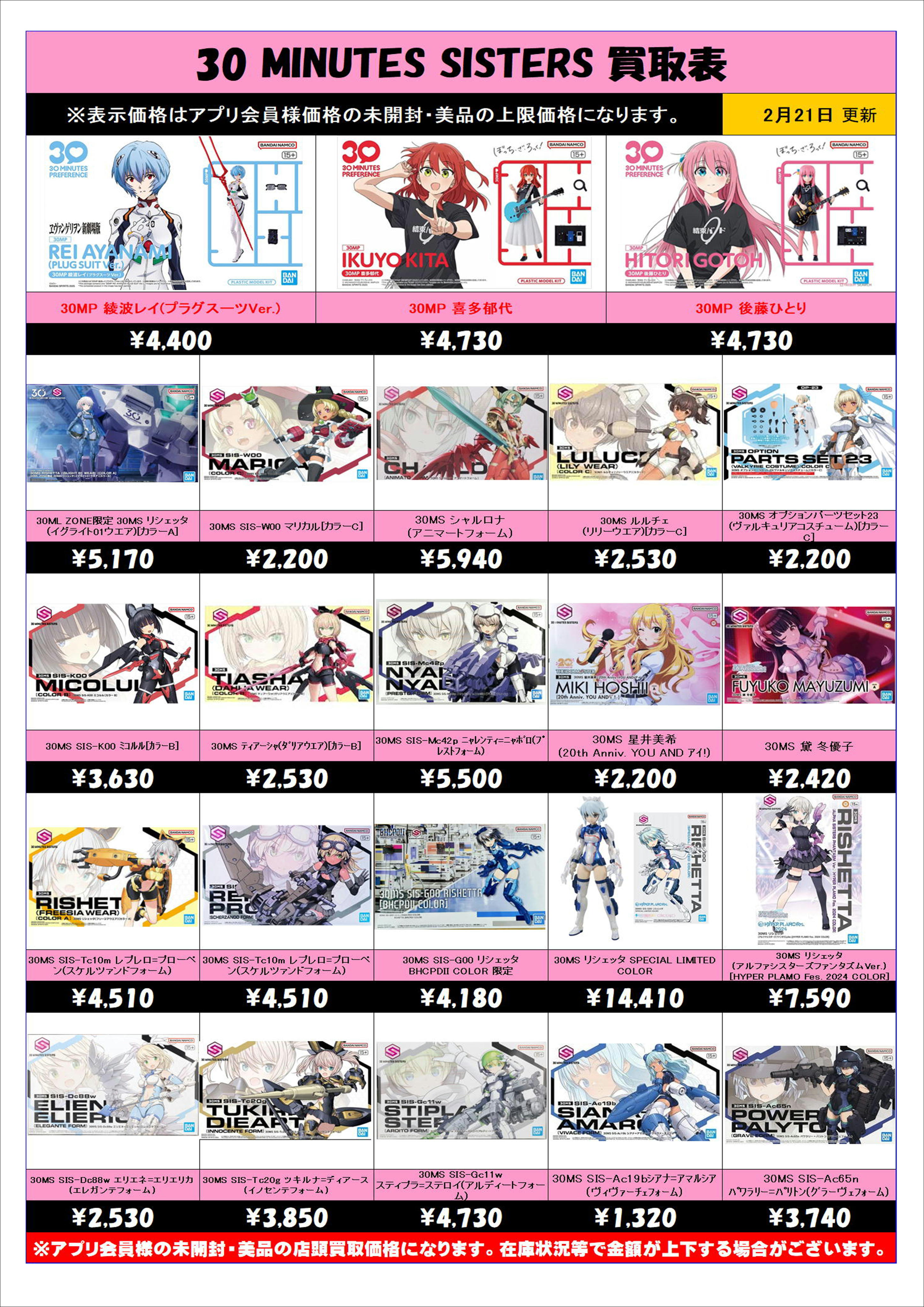 美少女プラモデル30MS買取リスト 更新しました!  2/21~