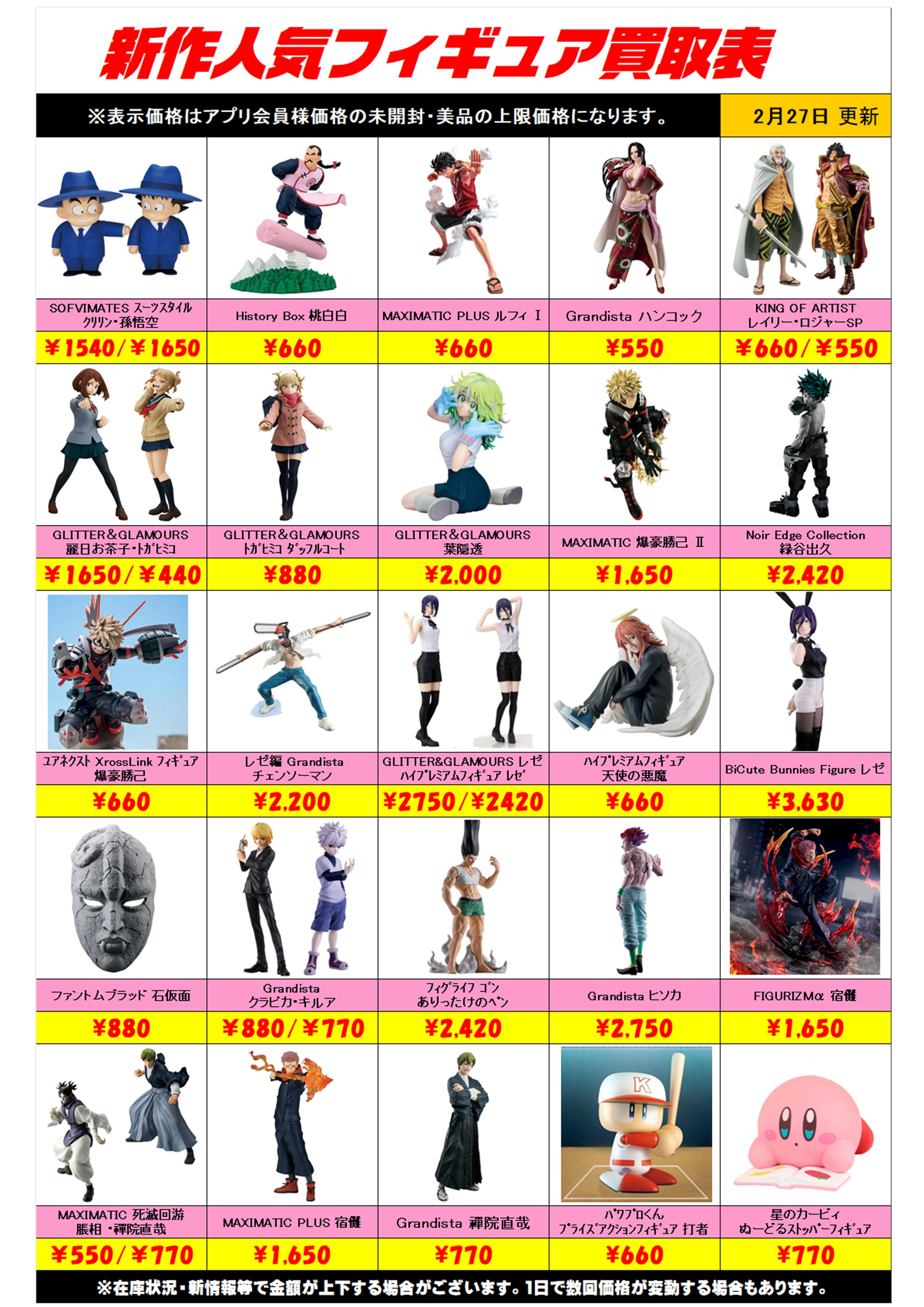 新作プライズフィギュア買取リスト更新しました! 2/27~ プラスアップキャンペーンも実施中です!