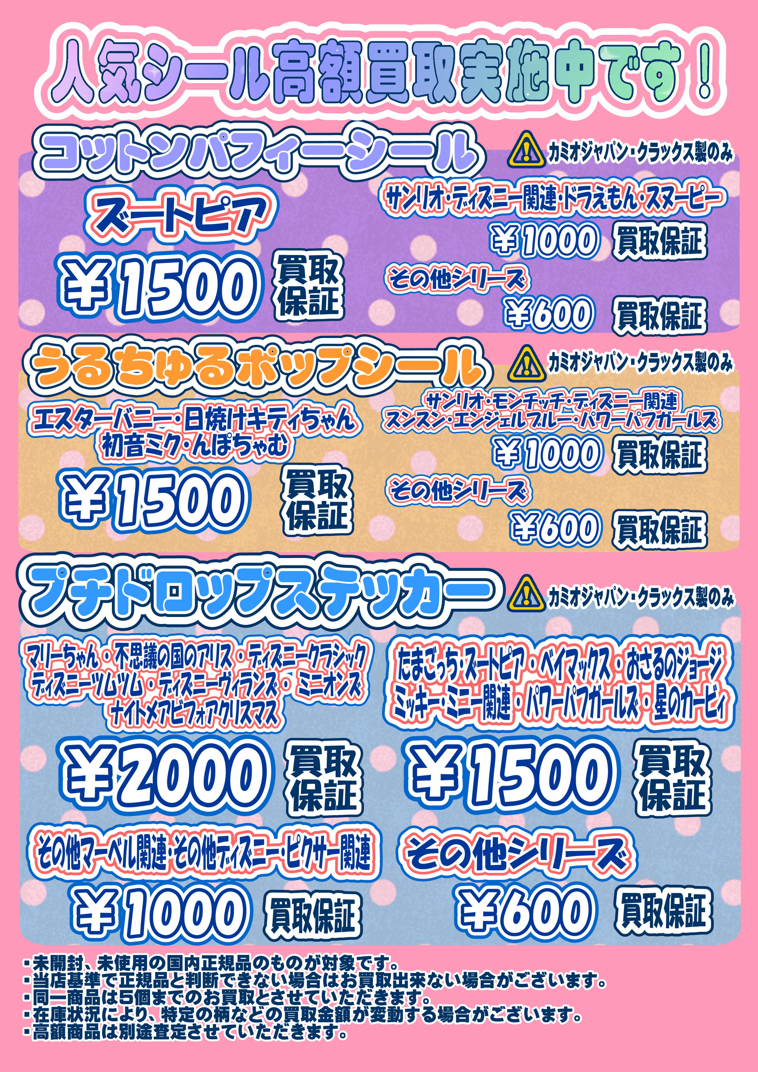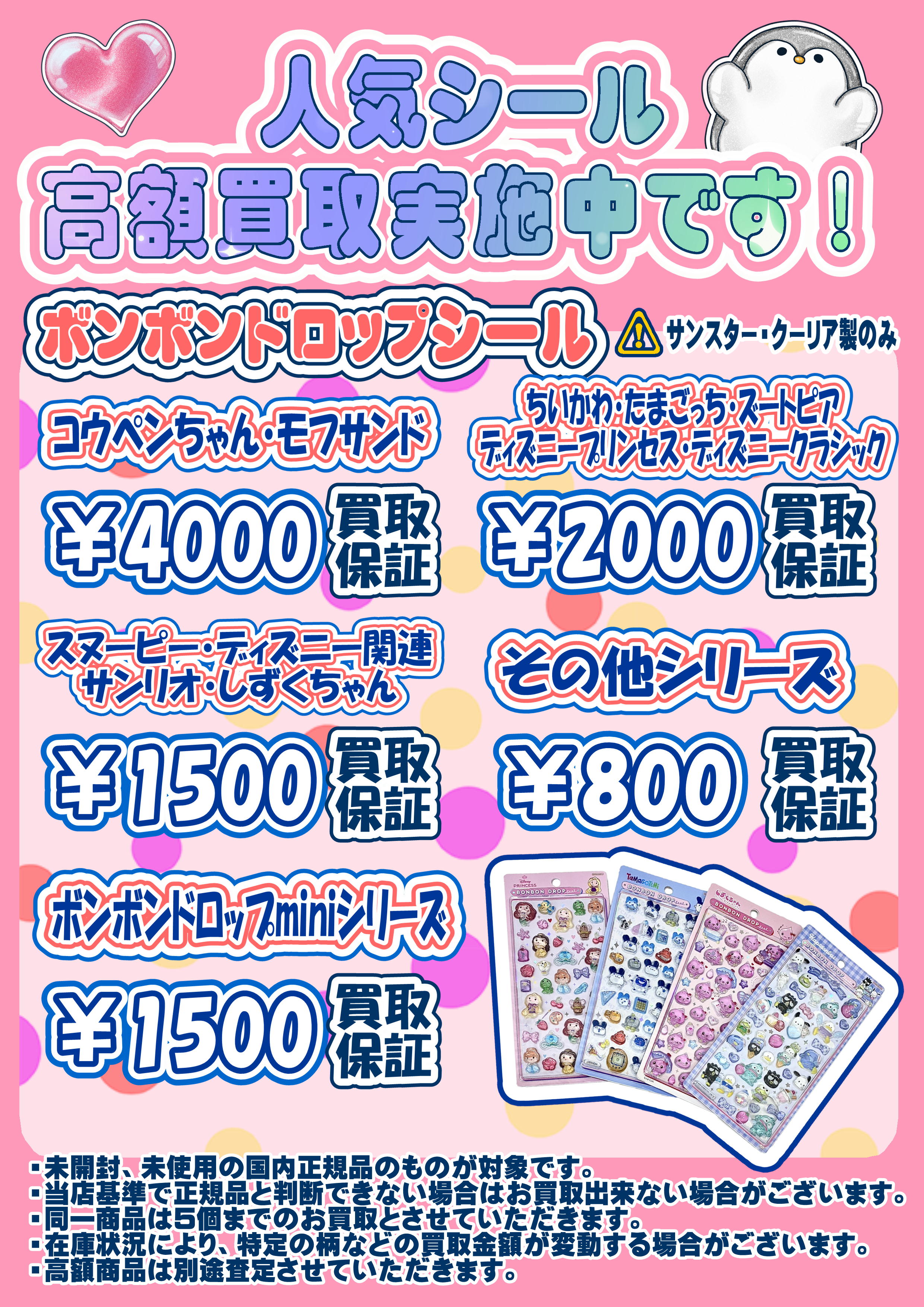 ボンボンドロップシール・プチドロップ・うるちゅるPOPシール・コットンパフィーシール 超高額買取実施中です! 3/1~