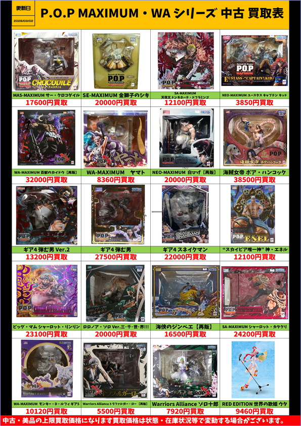 ワンピース P.O.P MAXIMUM warriors alliance シリーズ 中古 買取表更新しました! 3/2~
