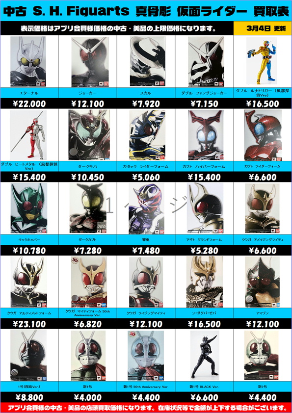 S.H.Figuarts 仮面ライダー 真骨彫 買取表更新しました! 1/4~