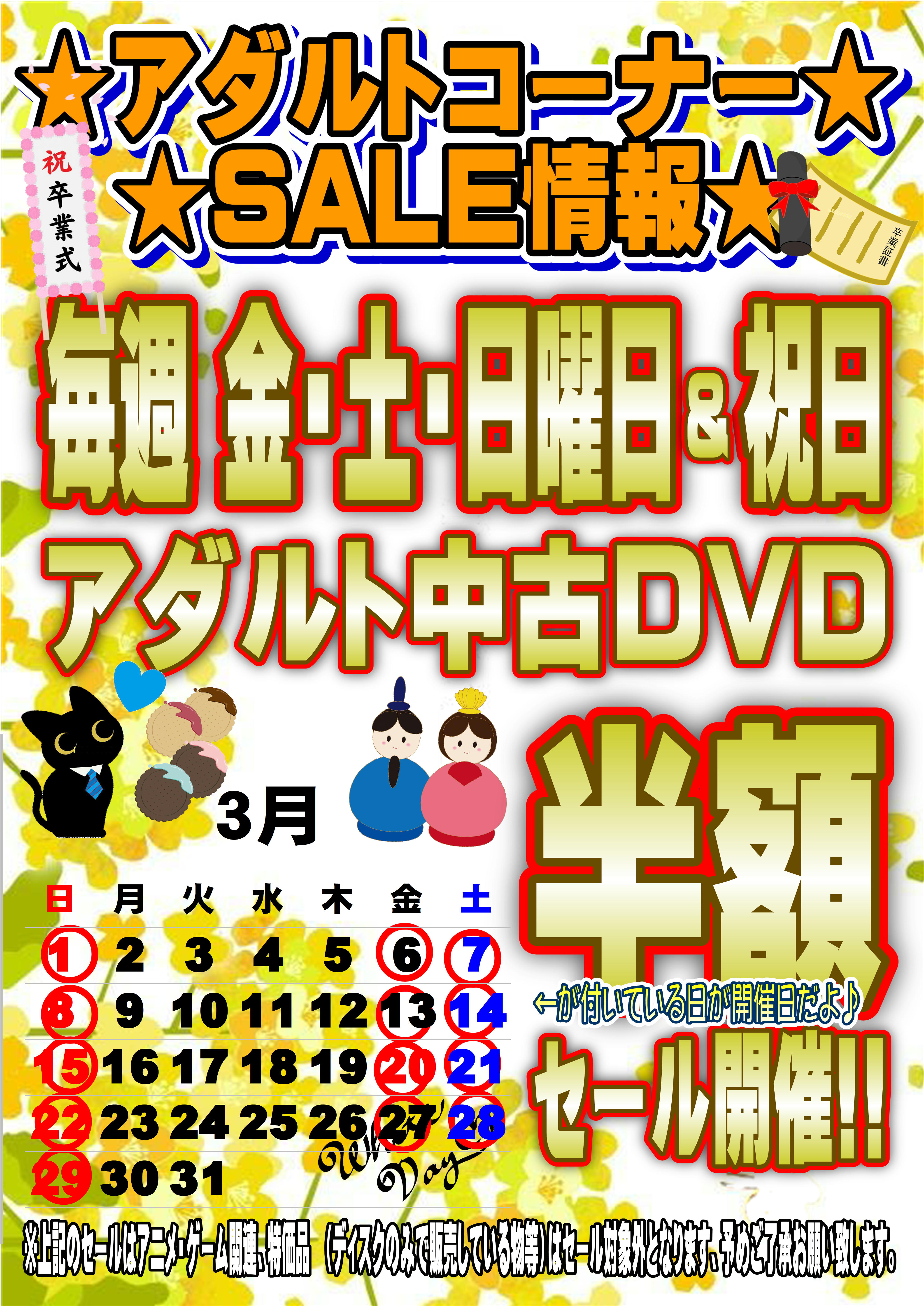 金・土・日の3日間、欲しかったあのDVDがいつもの半額で購入できるチャンスです!!