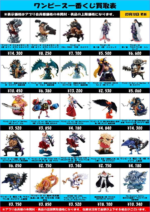 ワンピース一番くじ買取表 更新しました! 3/10~