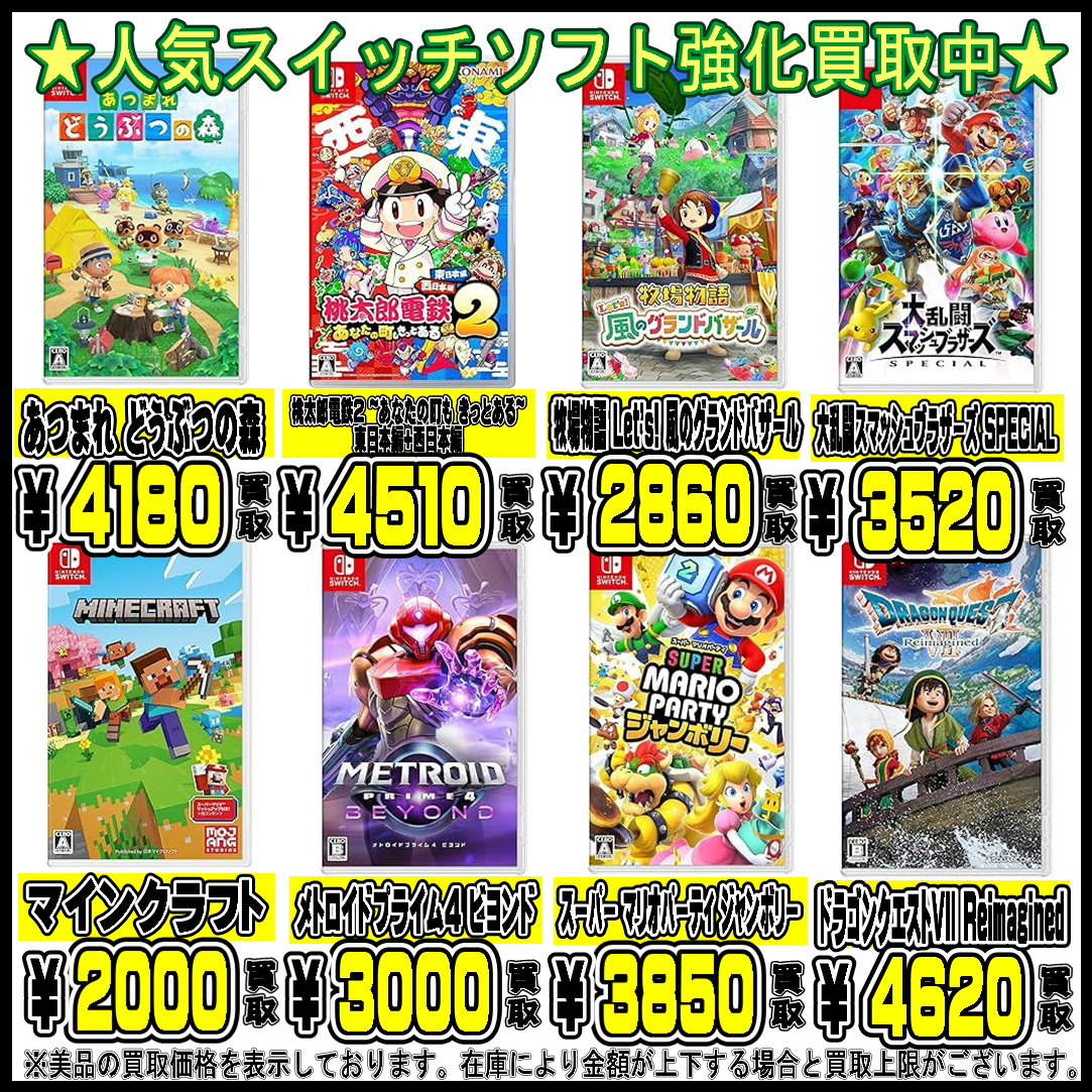 | スイッチ鉄板ランキング | 買取金額 |