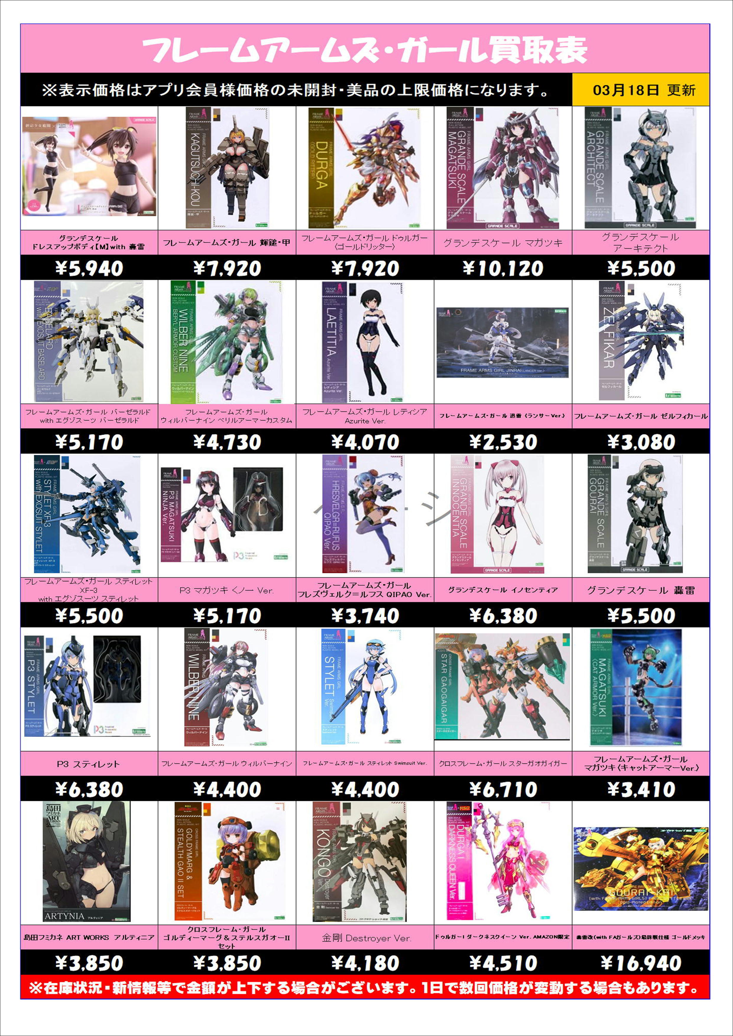 美少女プラモデル フレームアームズ・ガール 買取リスト更新しました 3/18~
