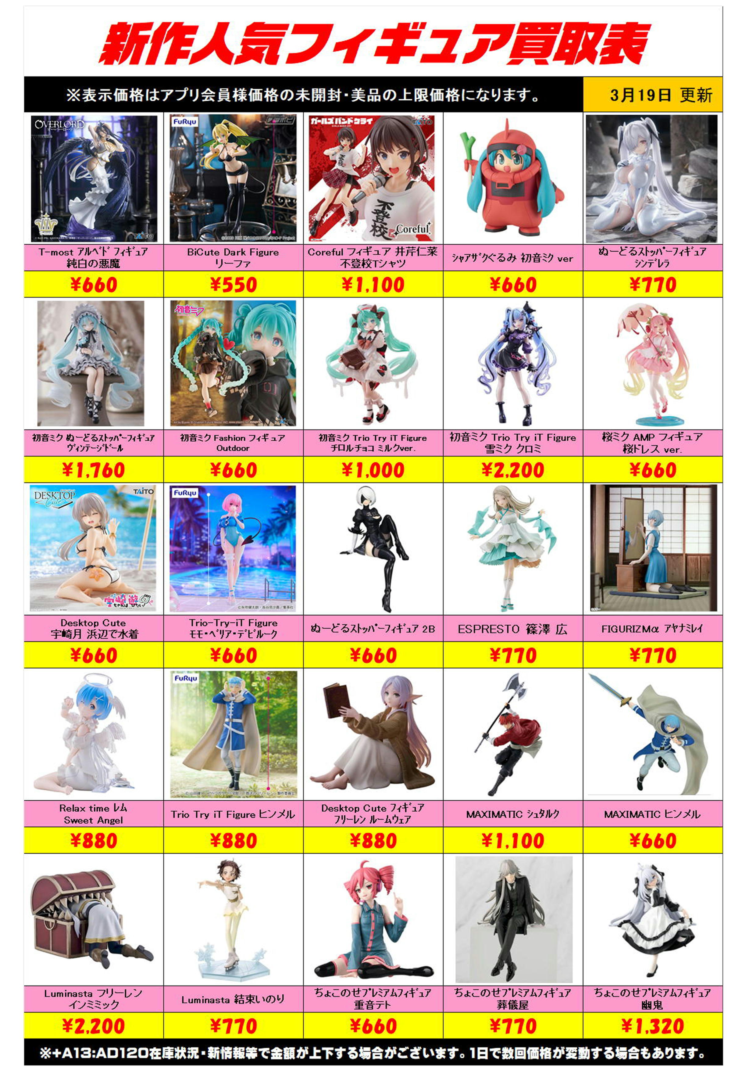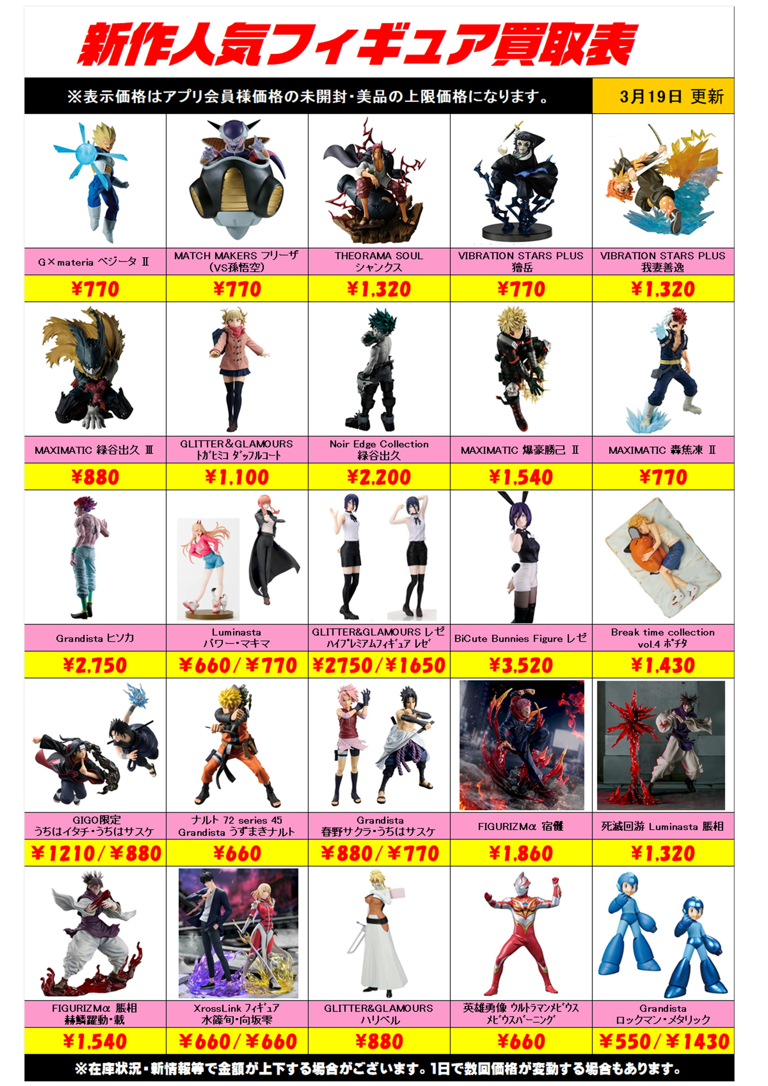新作プライズフィギュア買取リスト更新しました! 3/19~ プラスアップキャンペーンも実施中です!