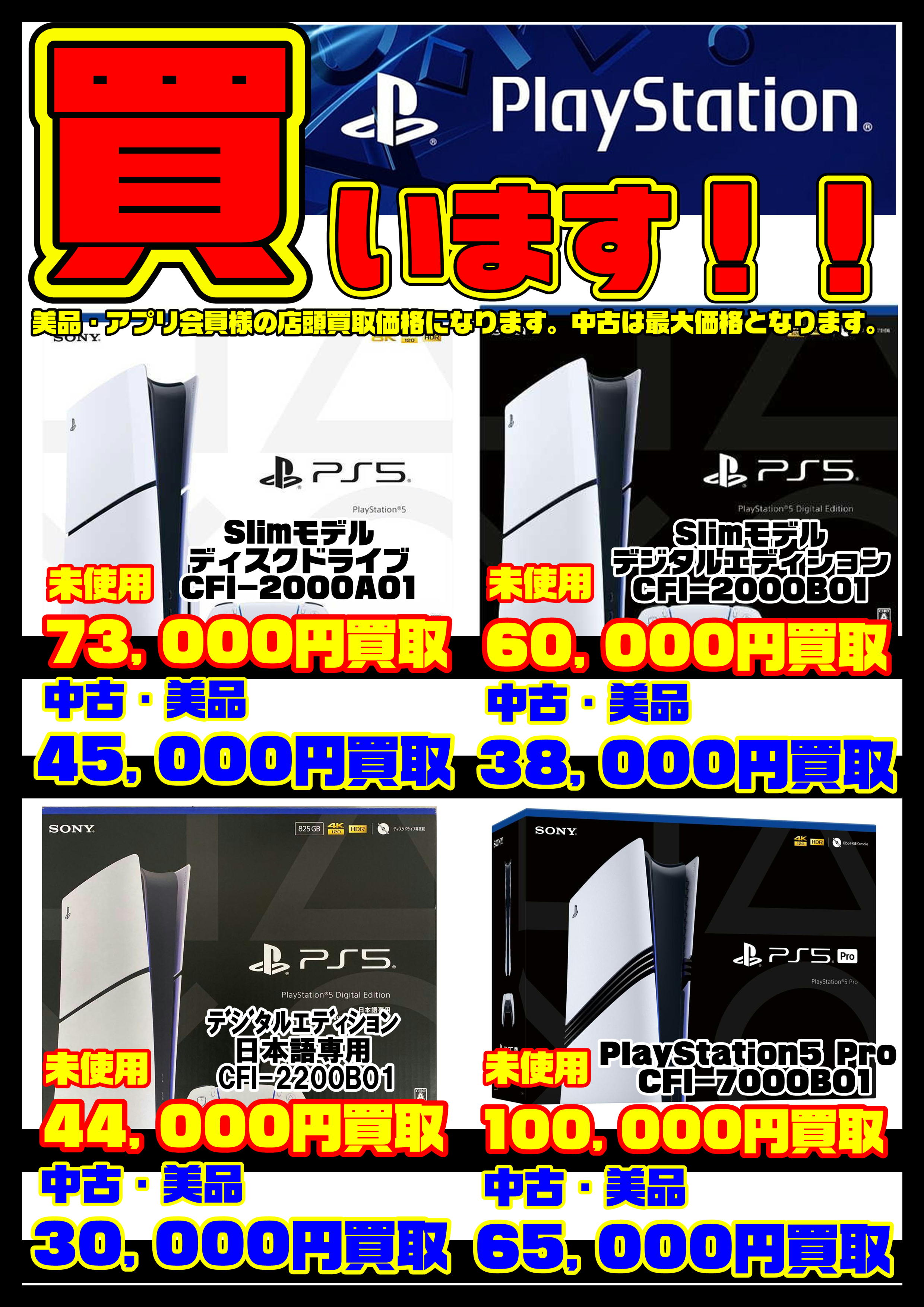 PS5本体 プロ PlayStation5 Pro CFI-7000B01/CFI-7100B01 100000 65000