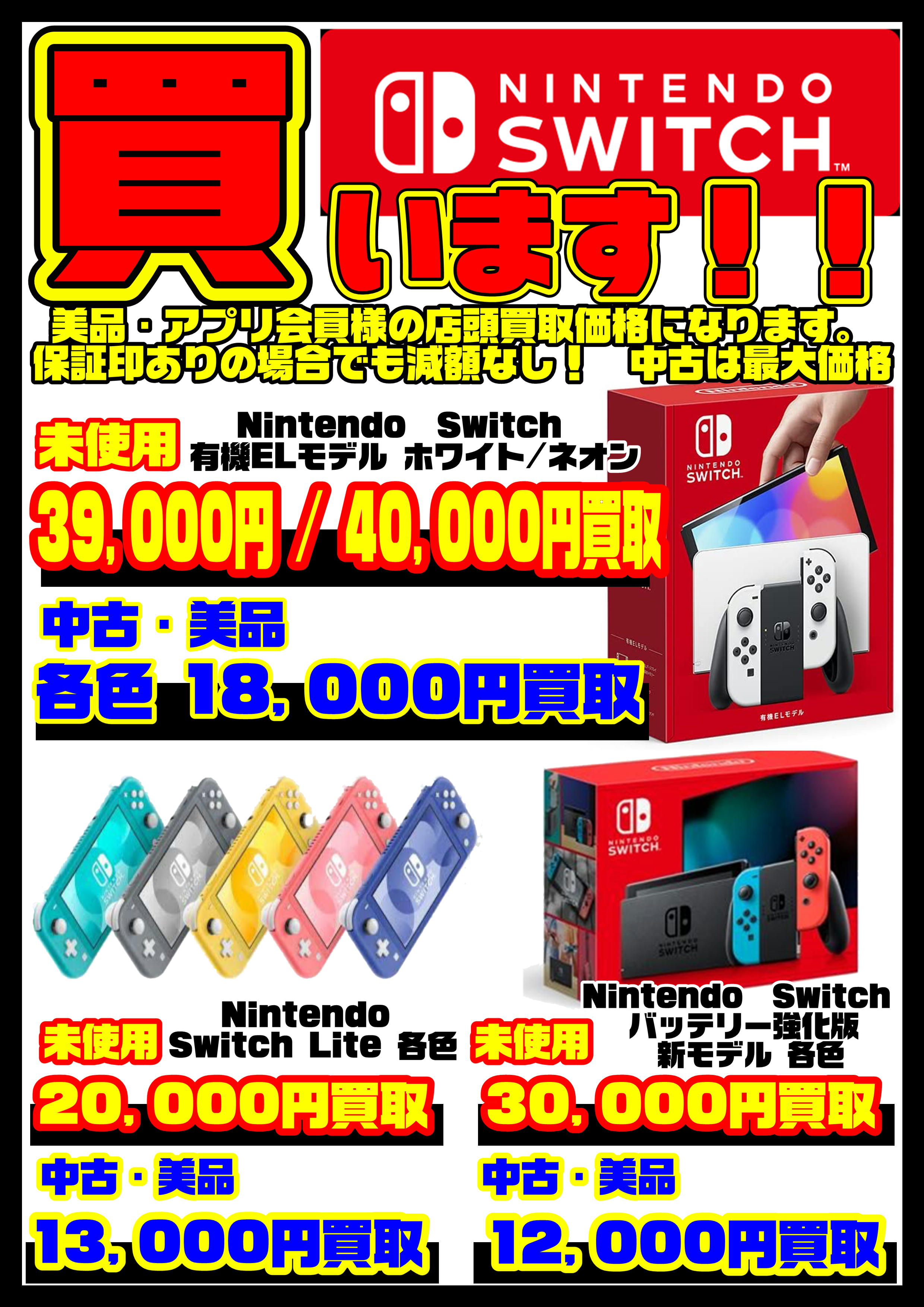 switch本体価格一覧 未使用 中古品 switch switch本体 有機ELモデル ネオン 各色 35000 15000 switch本体 有機ELモデル ホワイト 34000 15000 sw …