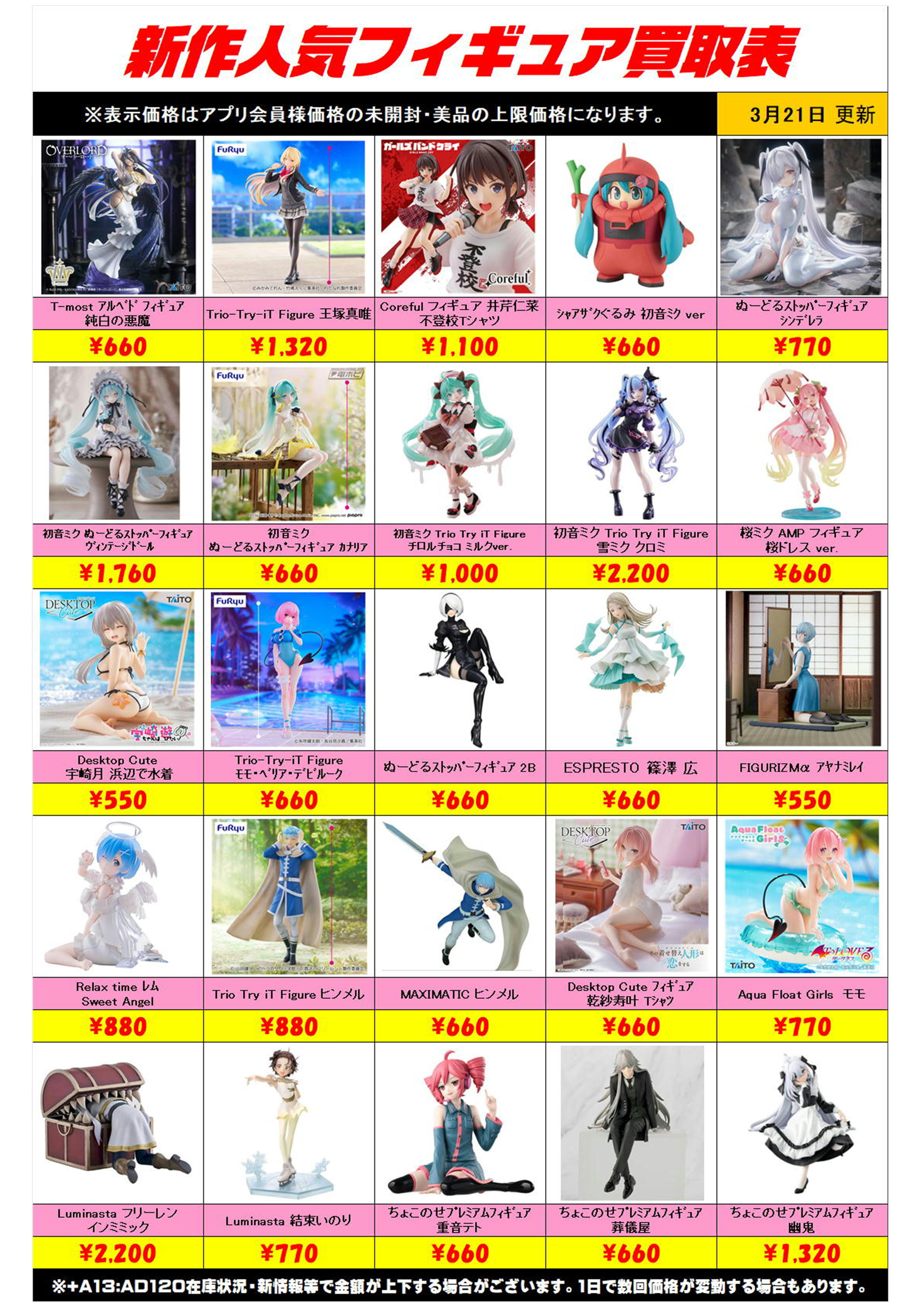 新作プライズフィギュア買取リスト更新しました! 3/21~ プラスアップキャンペーンも実施中です!