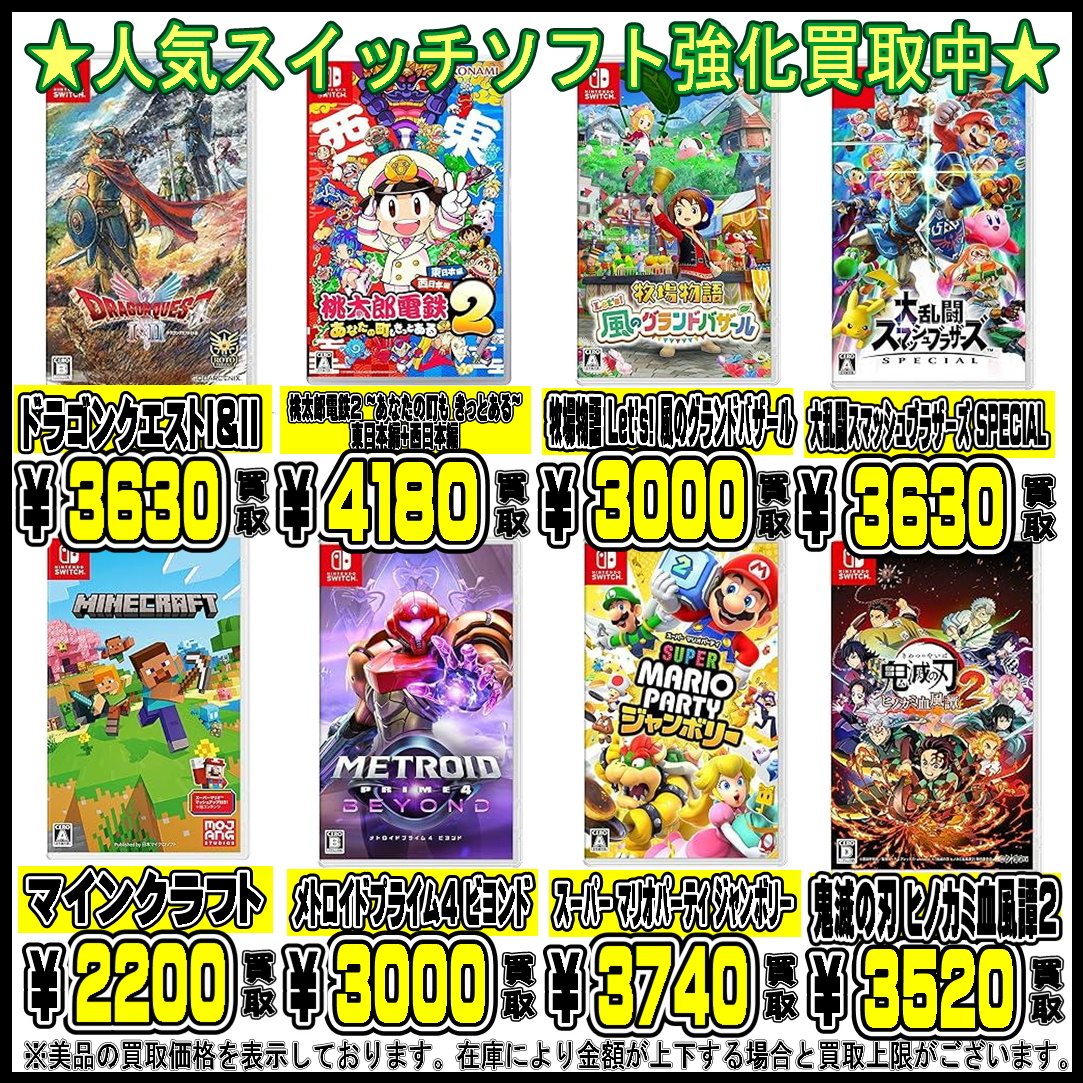 | スイッチ鉄板ランキング | 買取金額 |