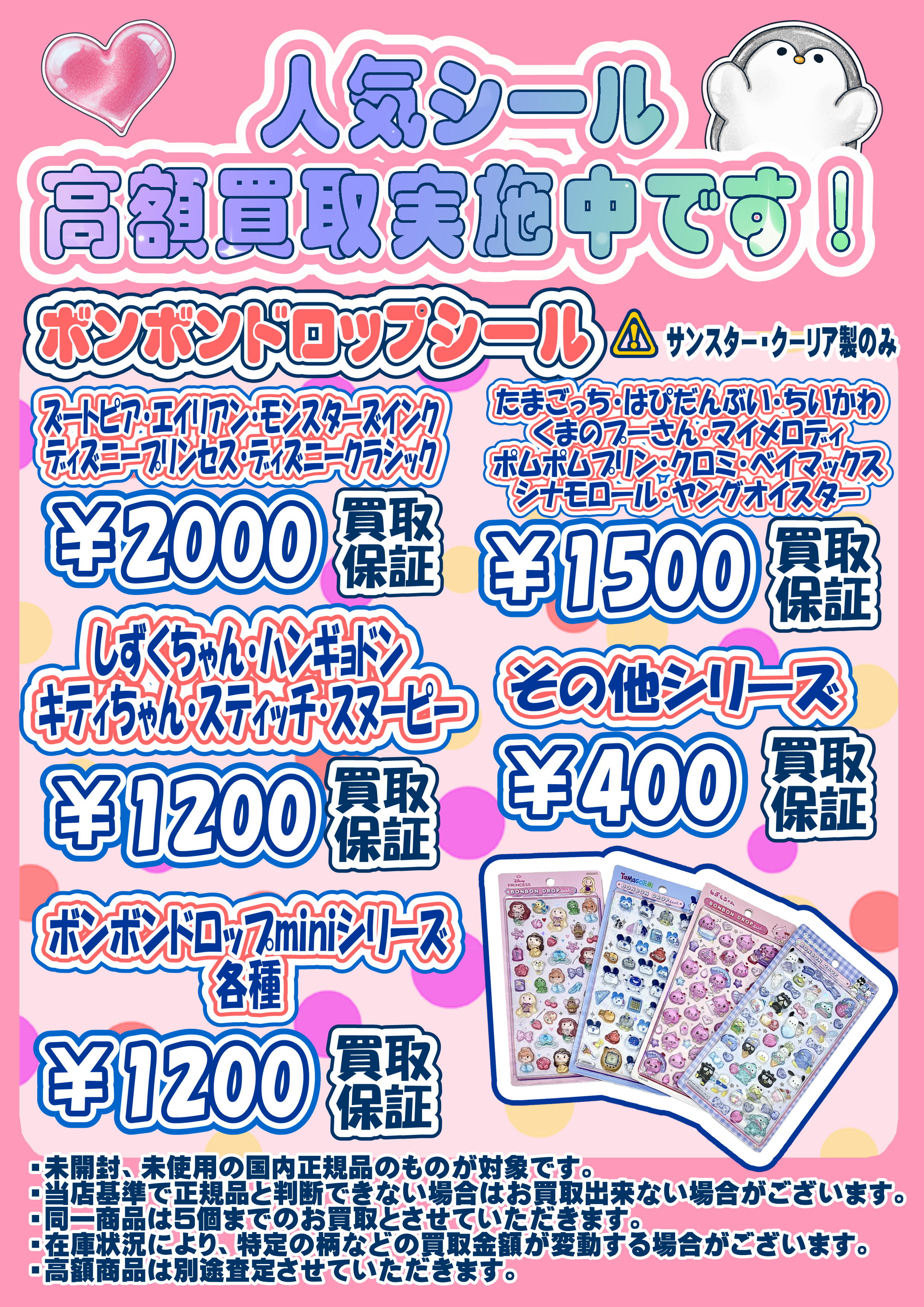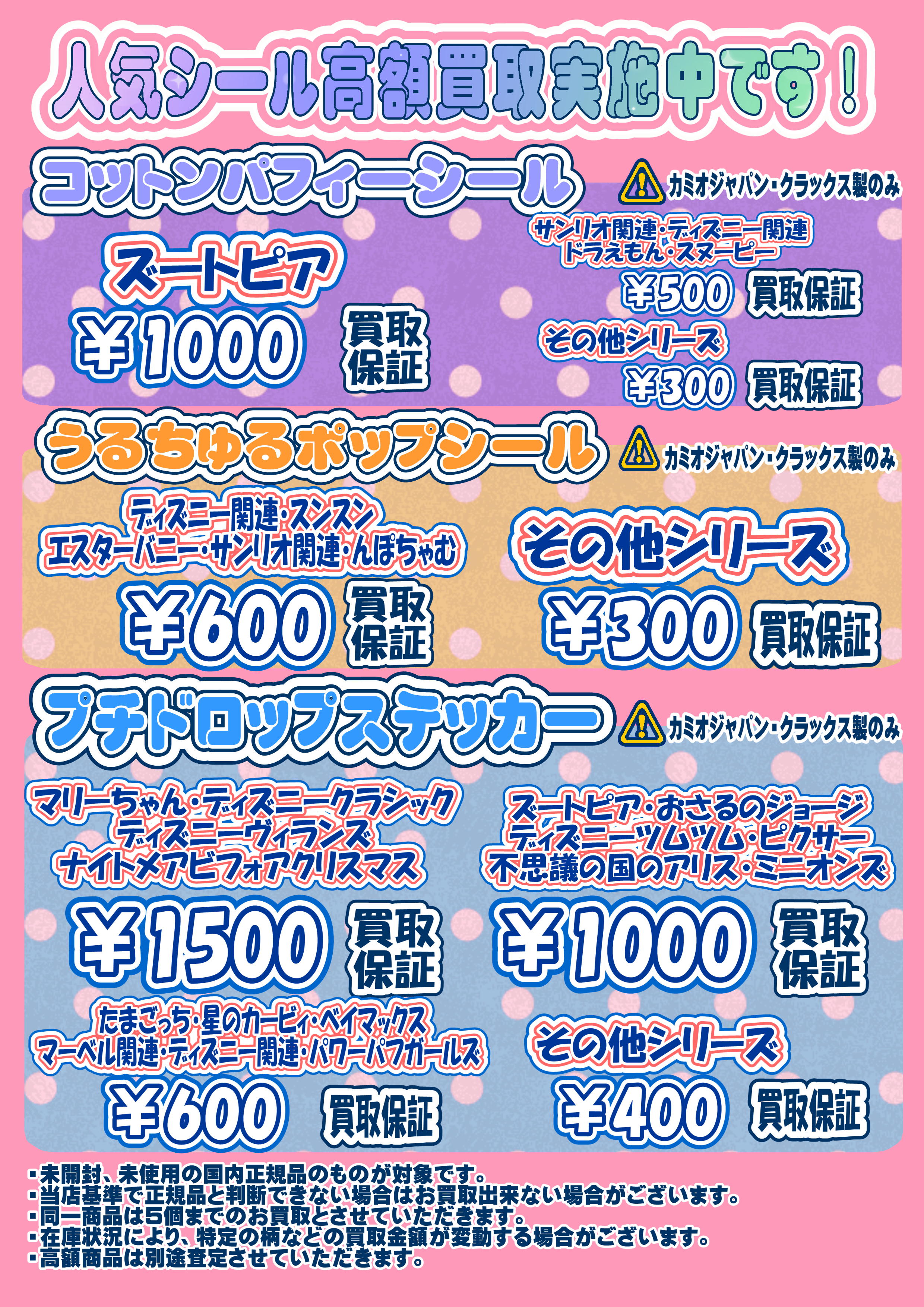 ・在庫状況により、特定の柄などの買取金額が変動する場合がございます。