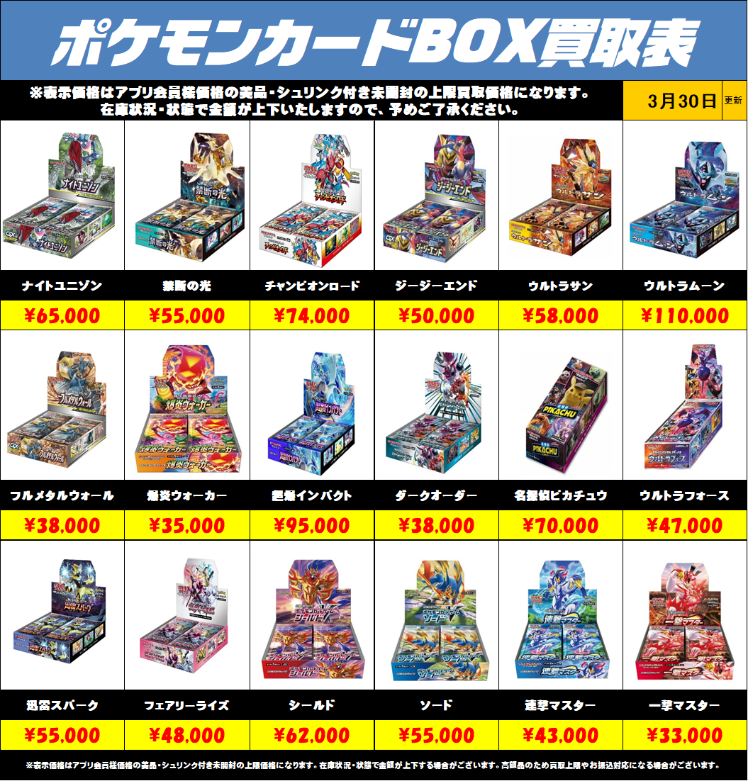 ポケモンカード未開封パック買取リストを更新しました!1/21~