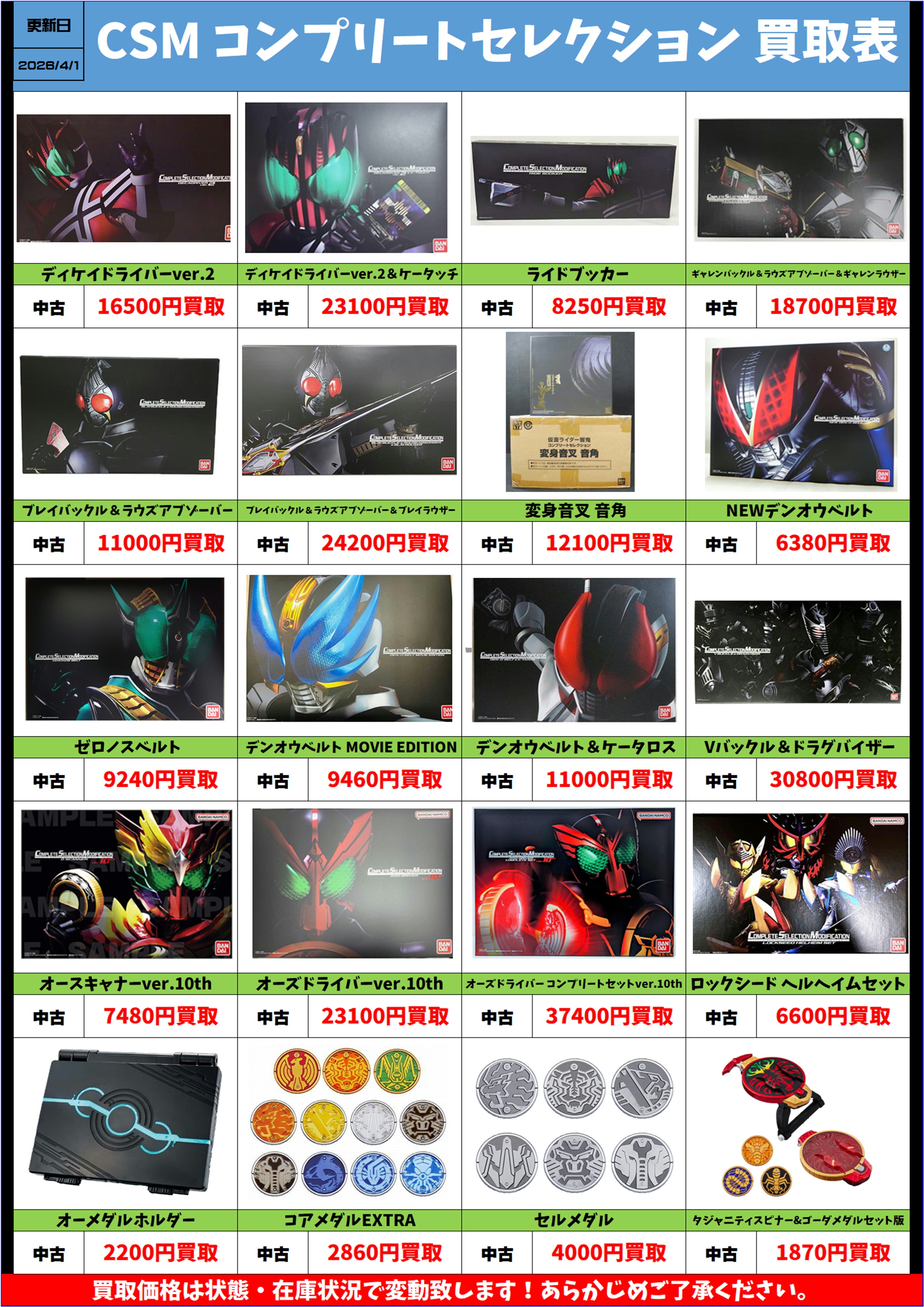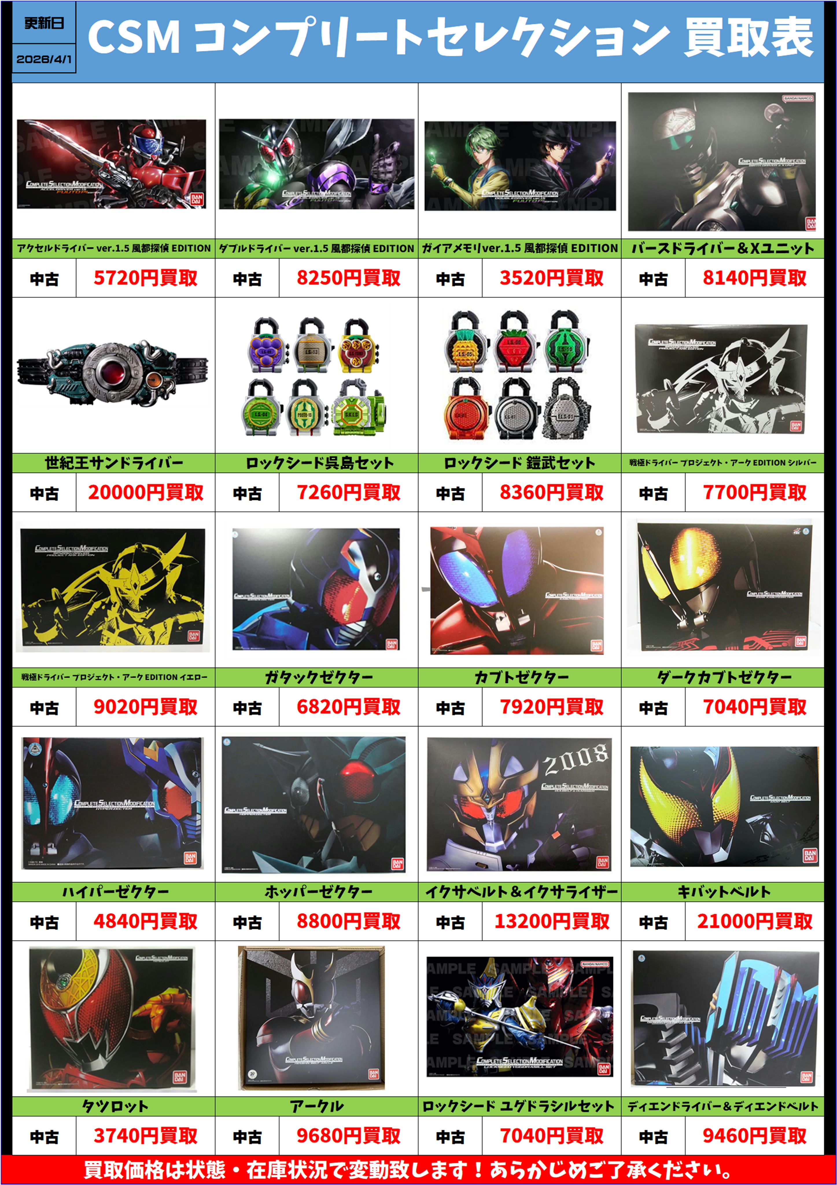 仮面ライダー CSM コンプリートセレクション 中古 買取リスト更新しました! 4/1~