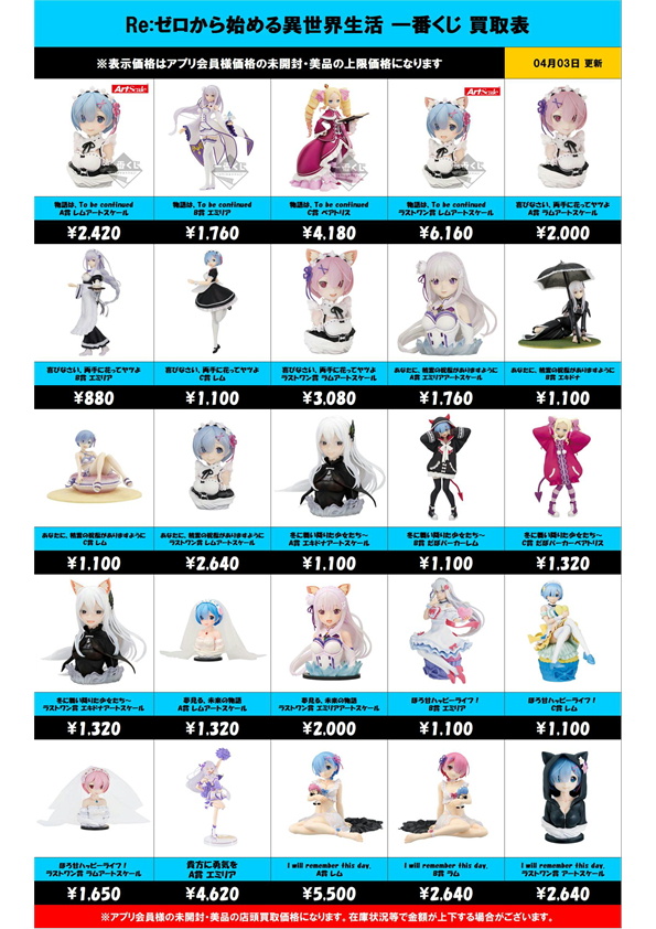 リゼロ一番くじ買取表 更新しました! 4/3~