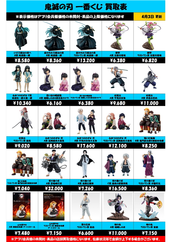 | 一番くじ 鬼滅の刃 ~宇髄天元 見参!~ C賞 宇髄天元フィギュア | 1100 |
