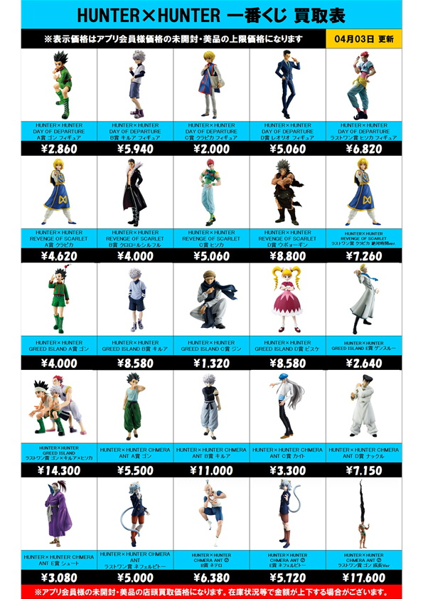 HUNTER×HUNTER 一番くじ買取表 更新しました! 4/3~
