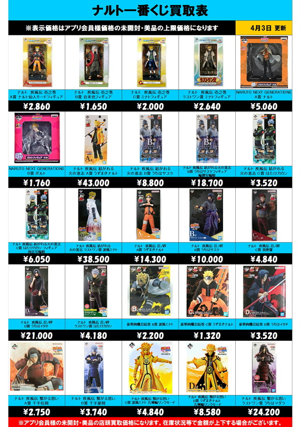 NARUTO一番くじ買取表 更新しました! 4/3~