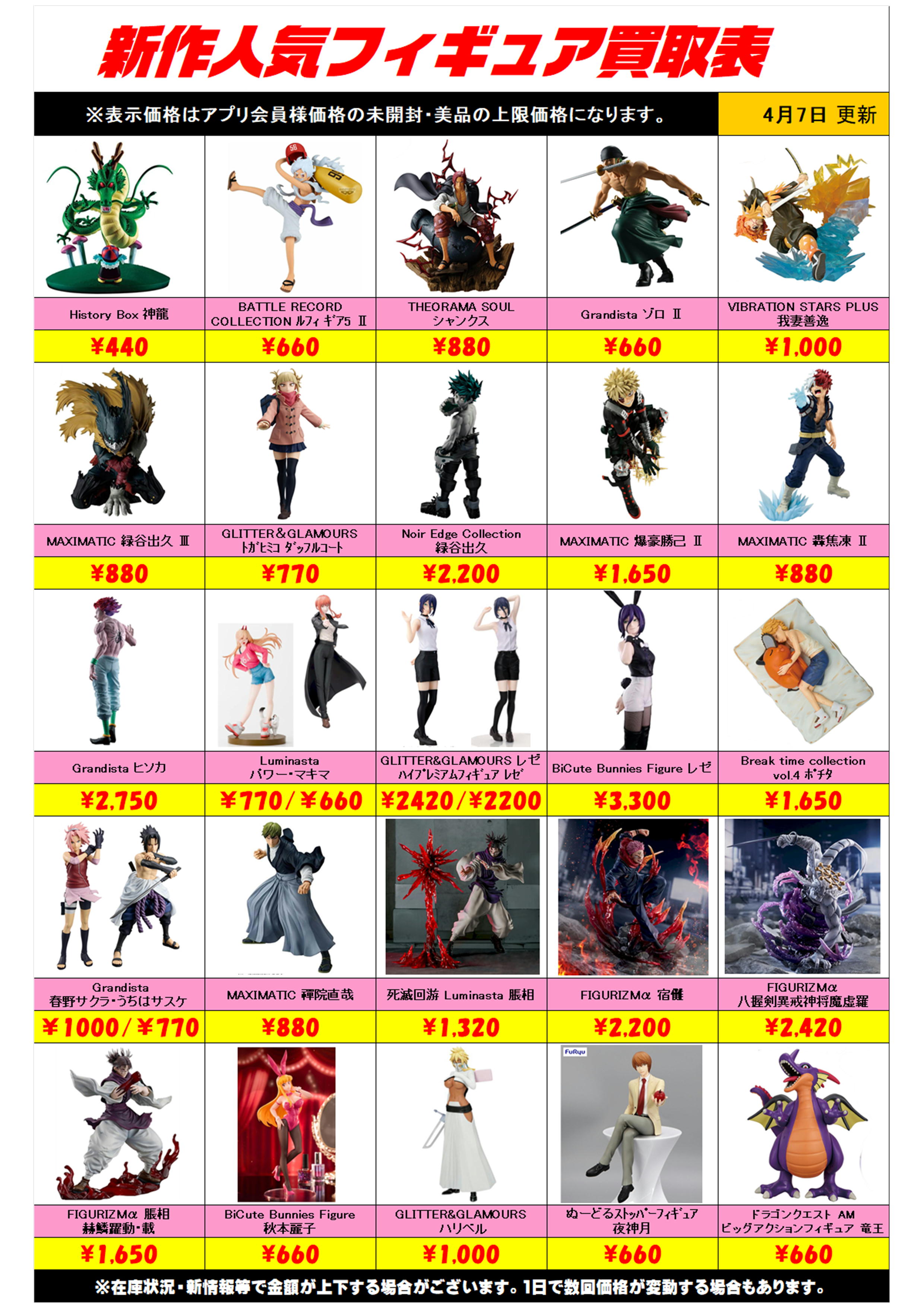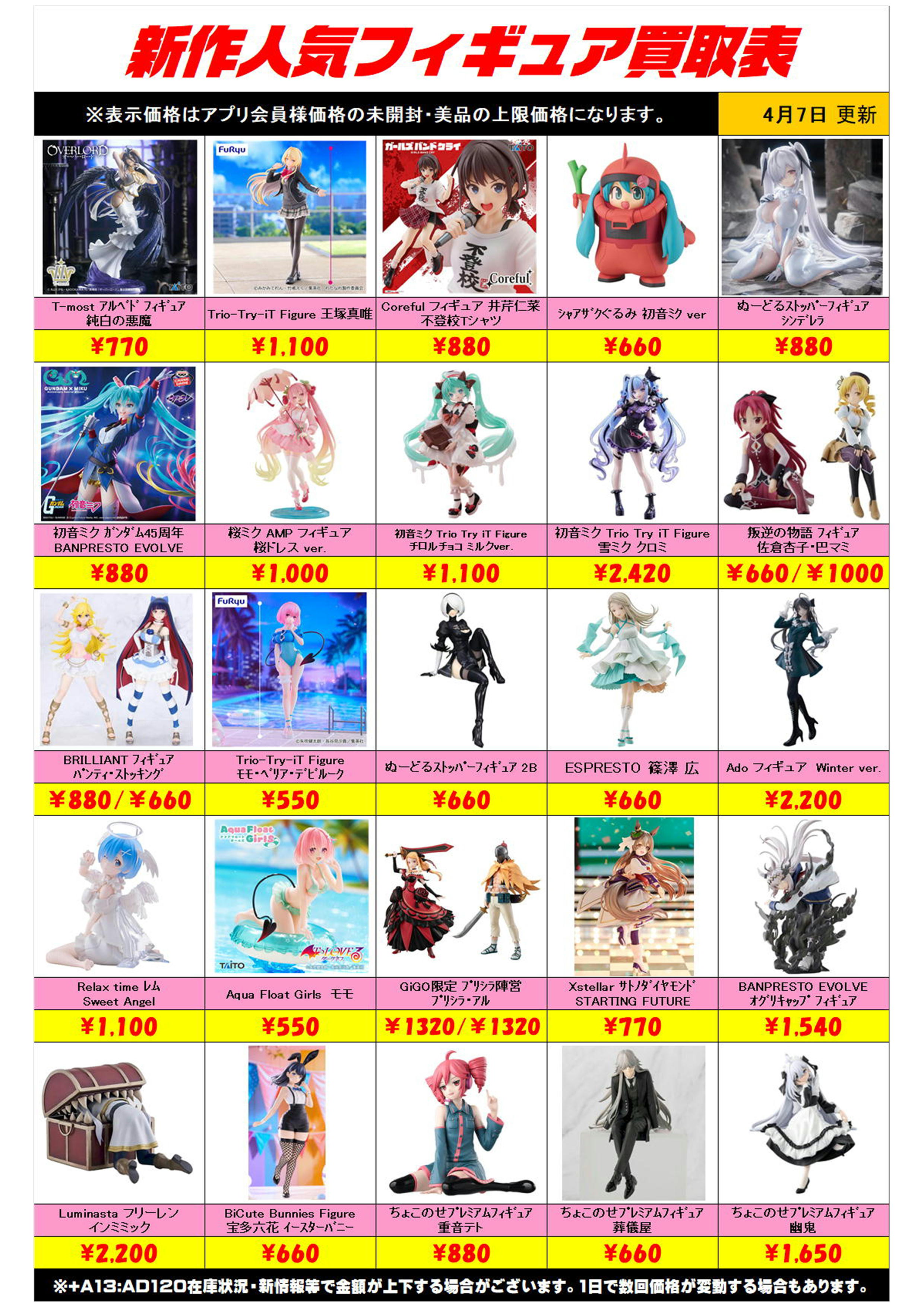 新作プライズフィギュア買取リスト更新しました! 4/7~ プラスアップキャンペーンも実施中です!