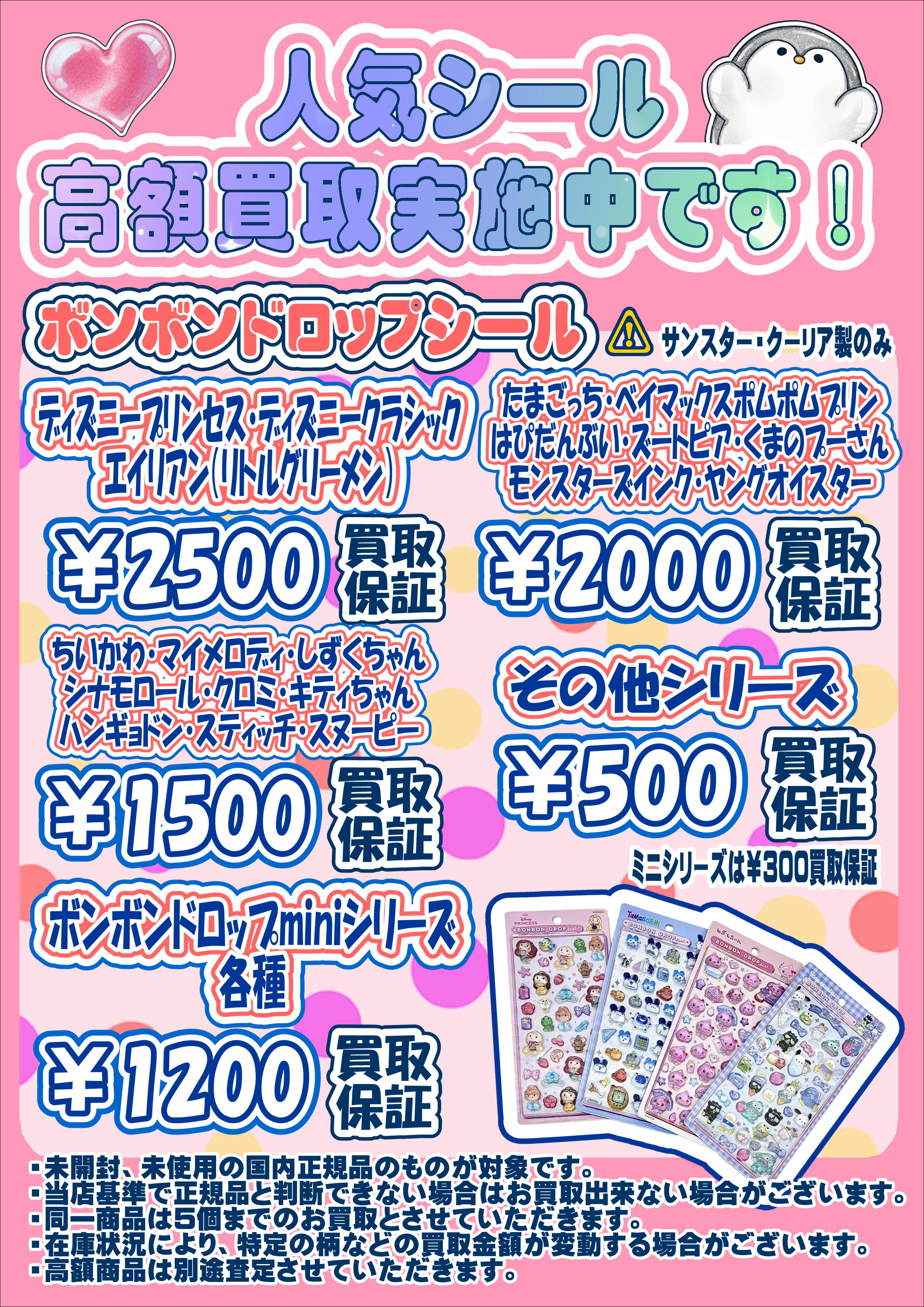 ・在庫状況により、特定の柄などの買取金額が変動する場合がございます。