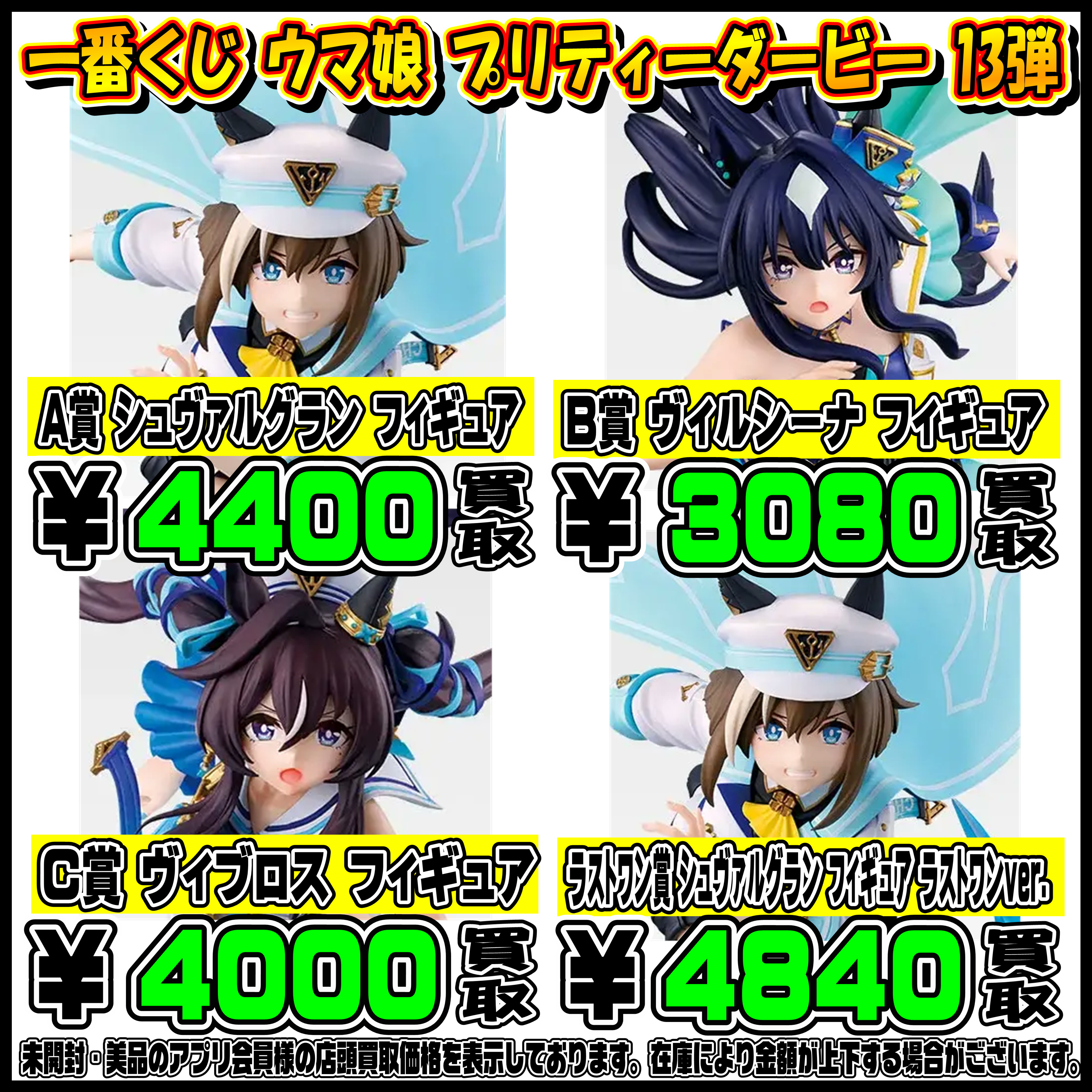 新作一番くじ買取リスト更新しました! 4/9~ メダリスト・スト6・ヒロアカ・ウマ娘 など