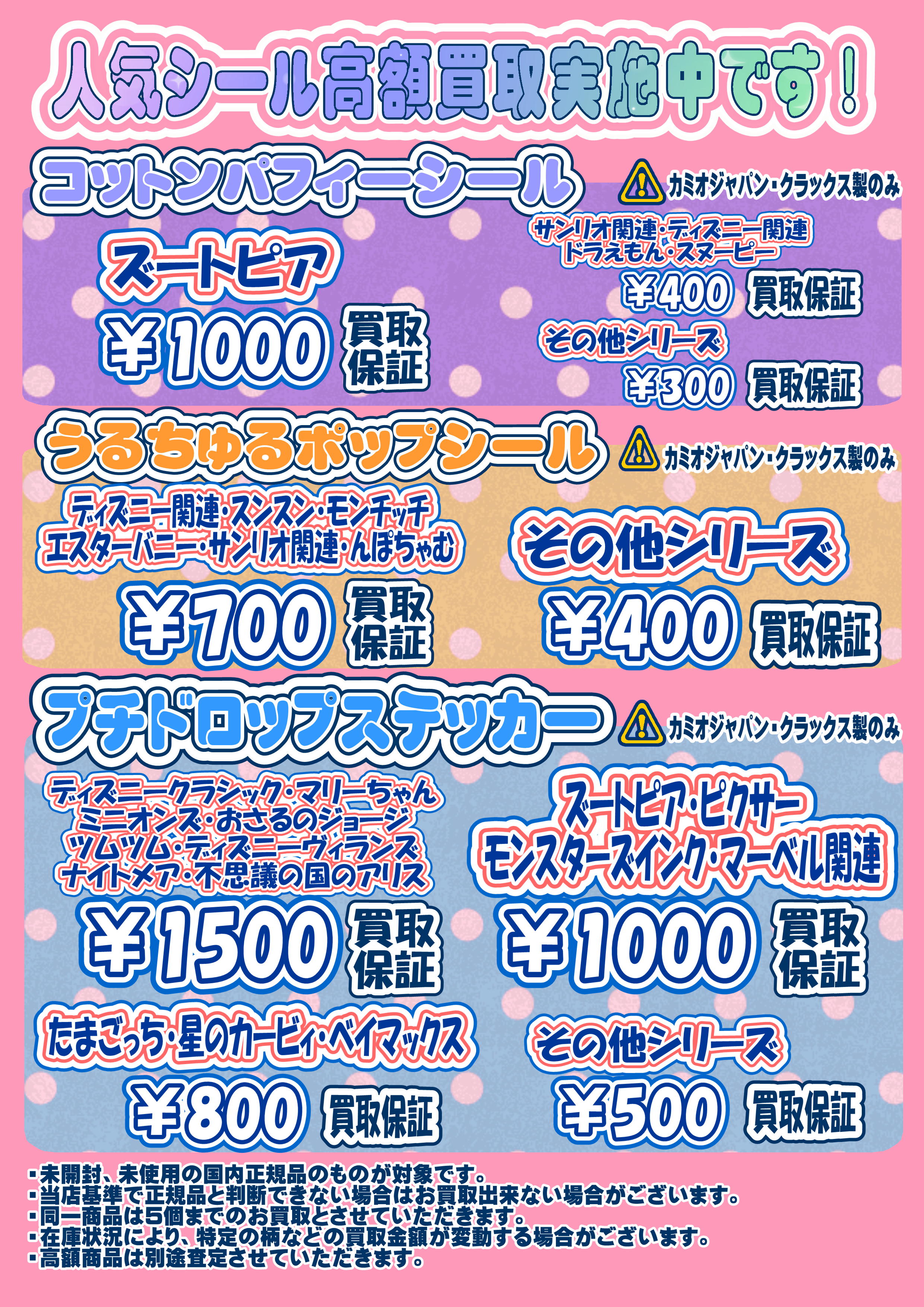 ・在庫状況により、特定の柄などの買取金額が変動する場合がございます。