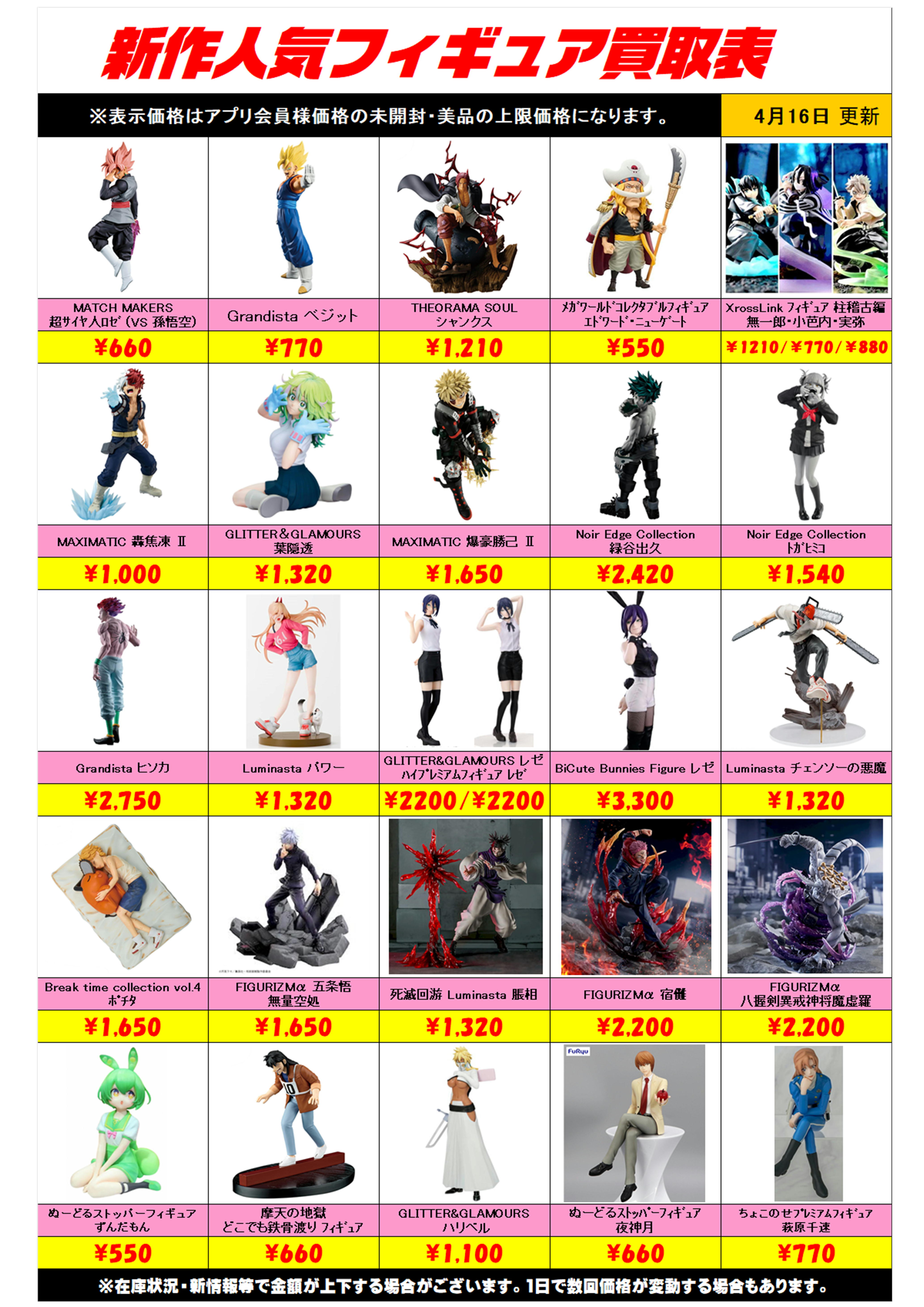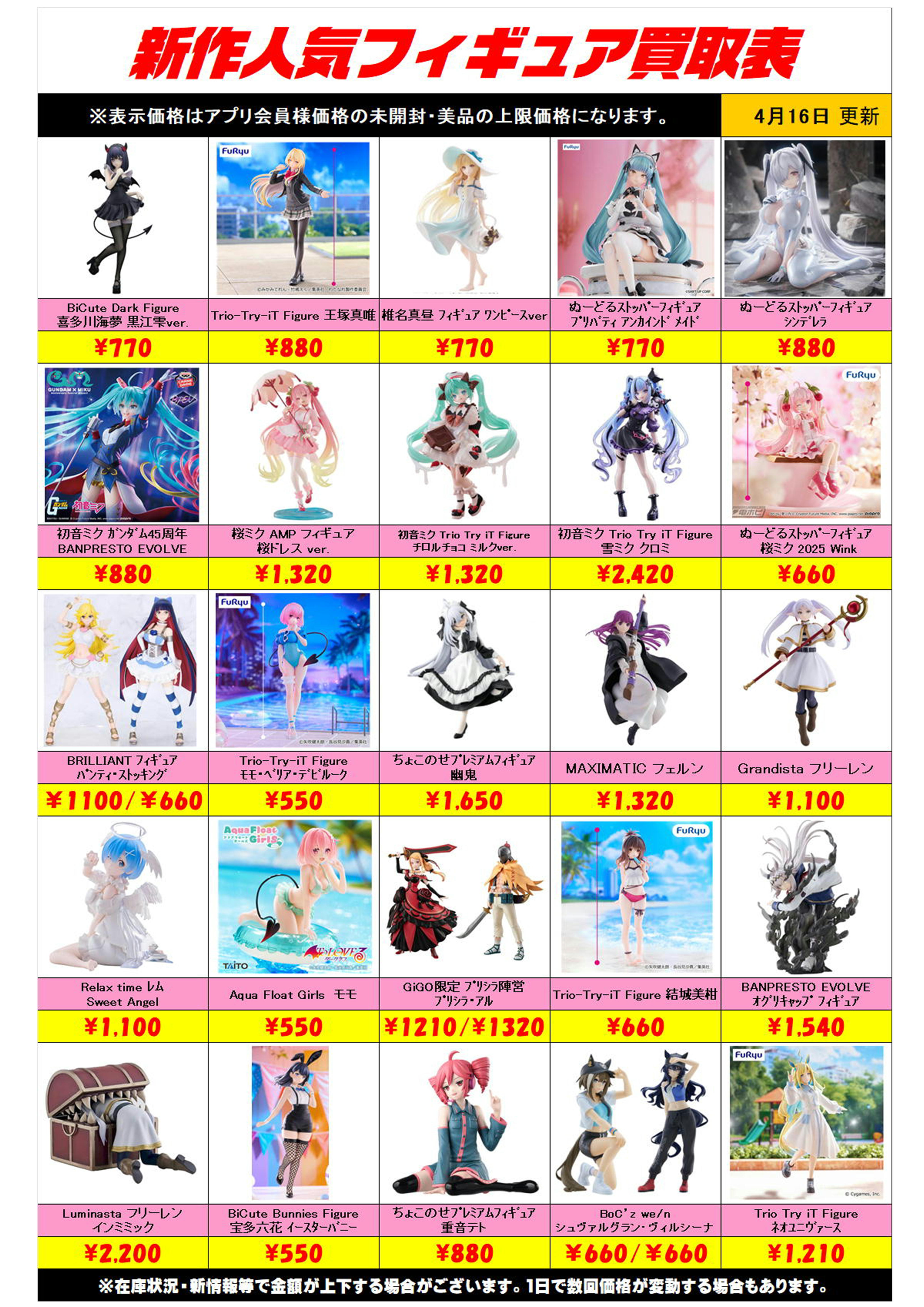 新作プライズフィギュア買取リスト更新しました! 4/16~ プラスアップキャンペーンも実施中です!