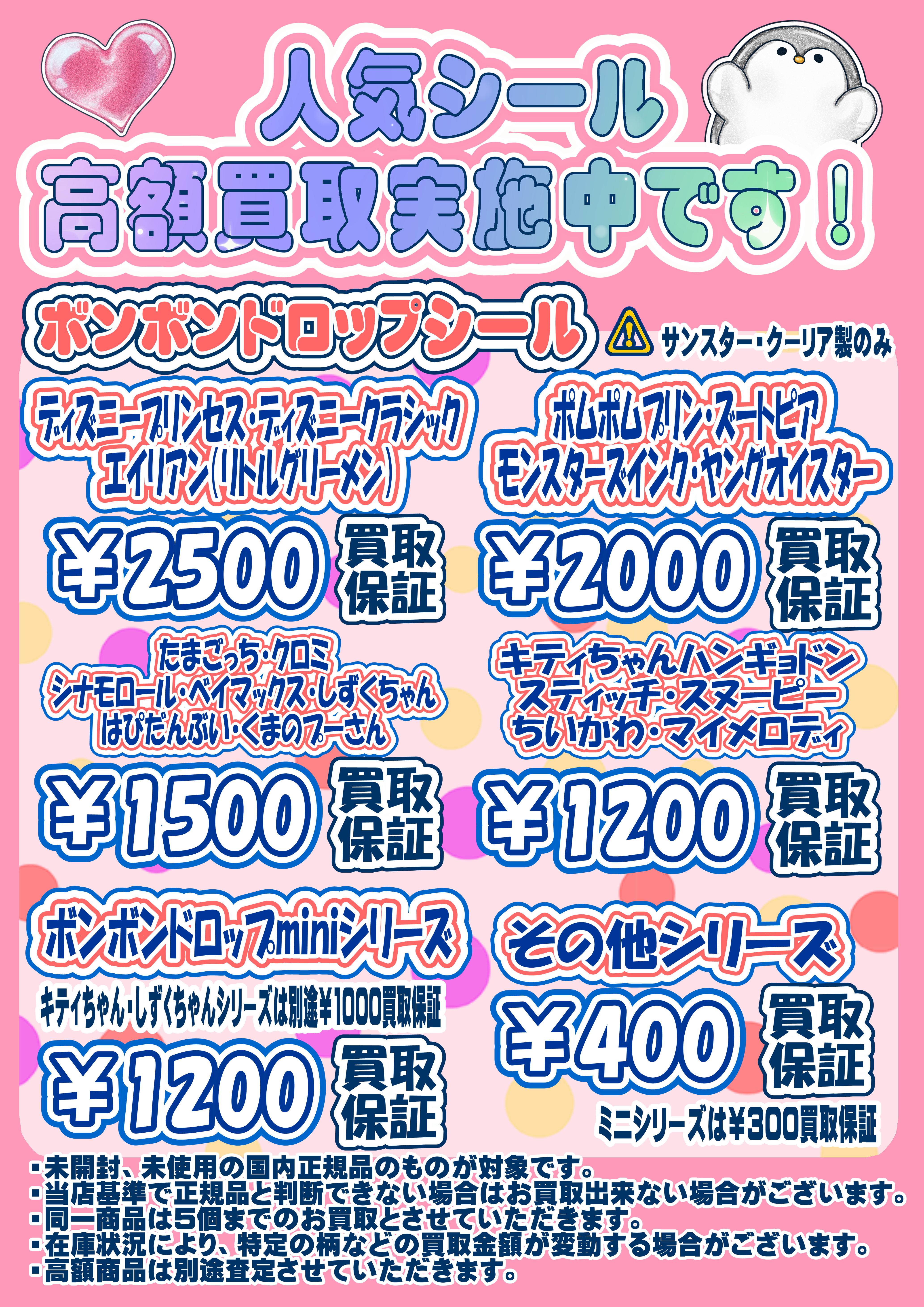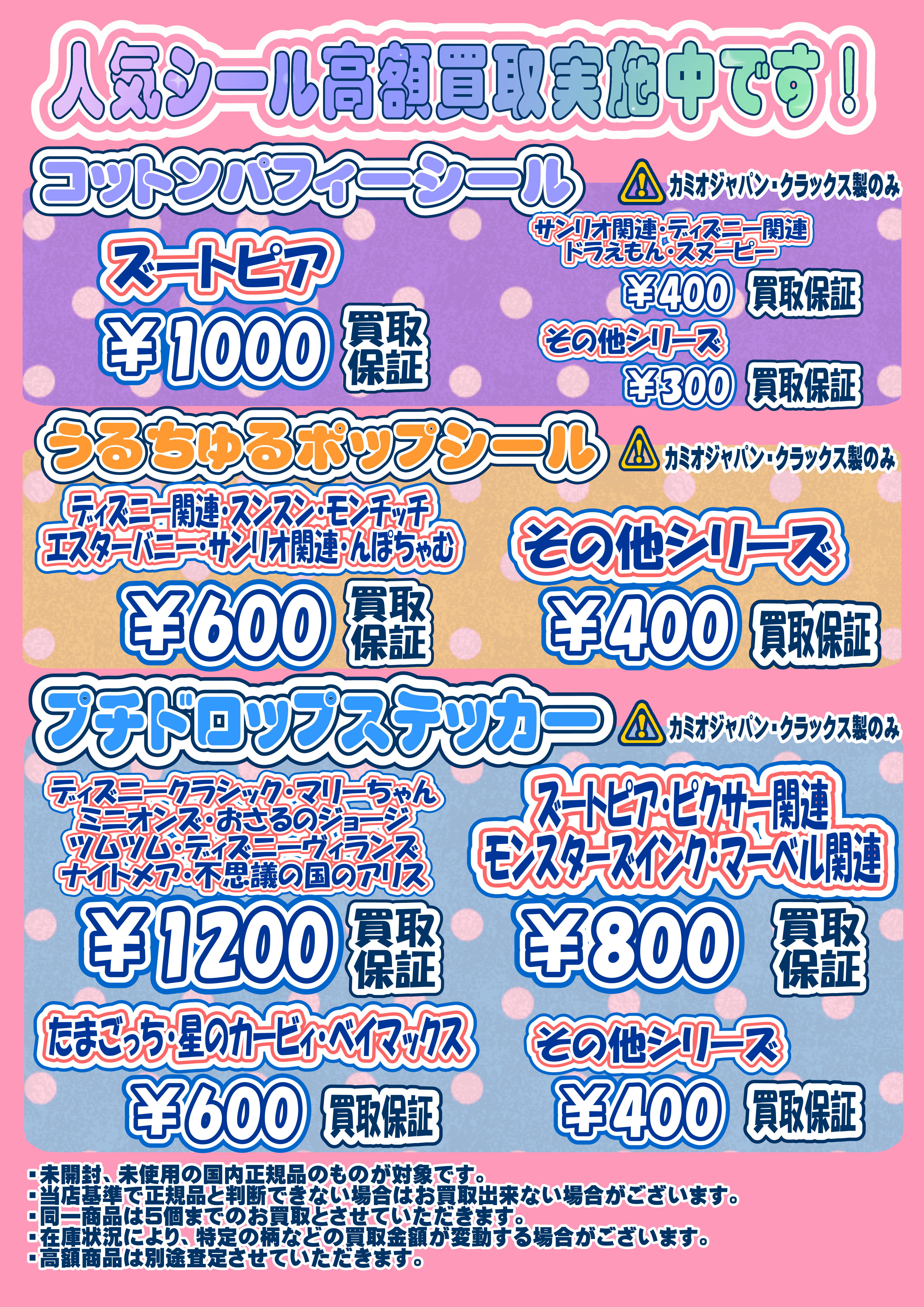 ・在庫状況により、特定の柄などの買取金額が変動する場合がございます。