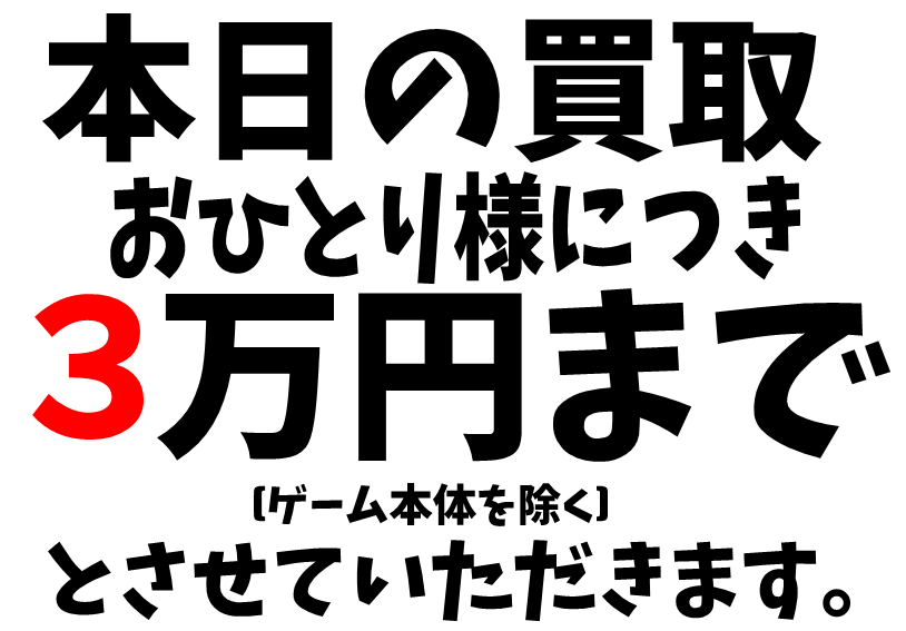 本日の買取受付は、3万円までとさせていただきます。