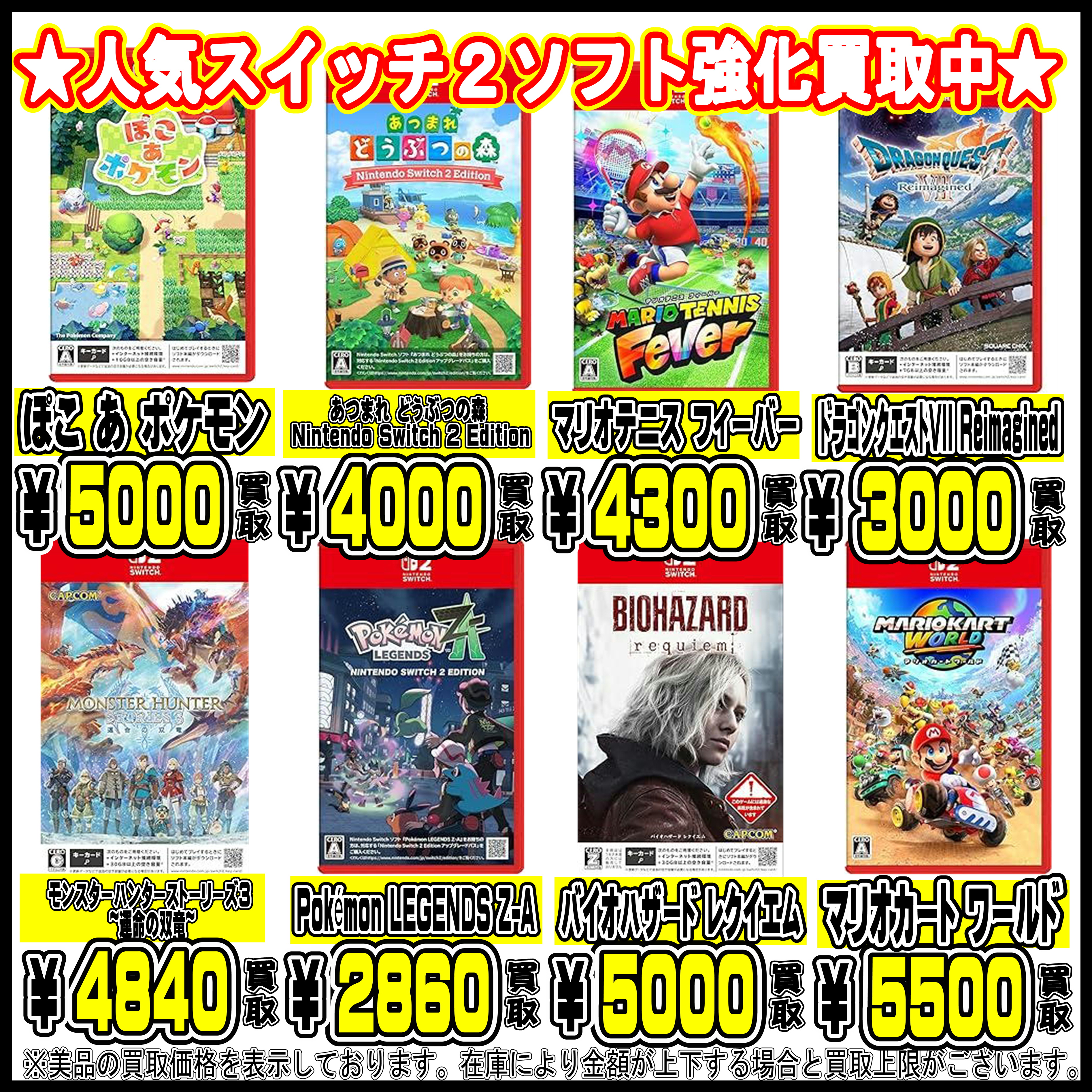 | 人気switch2ソフト | 買取金額 |