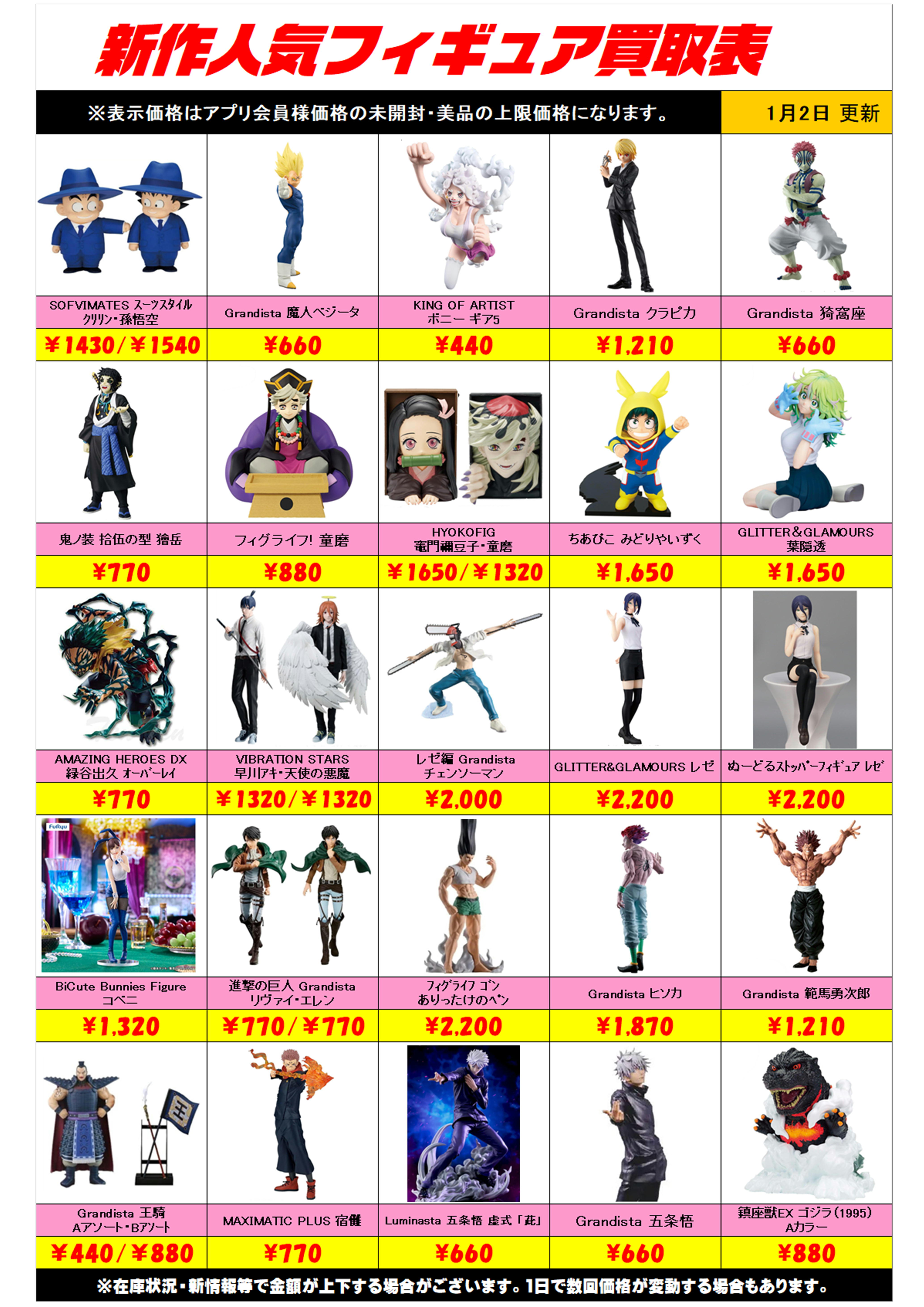 新作プライズフィギュア買取リスト更新しました! 1/2~ プラスアップキャンペーンも実施中です!